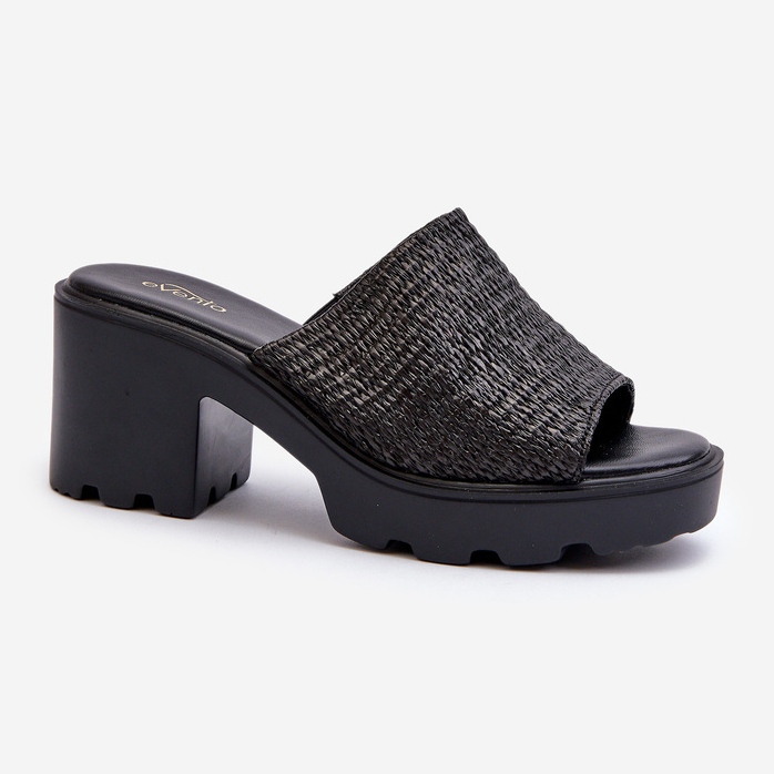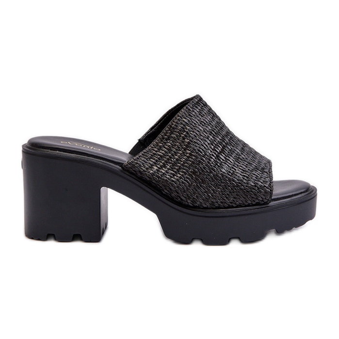 Détails: Tongs noires Titantha pour femmes avec talon haut tressé