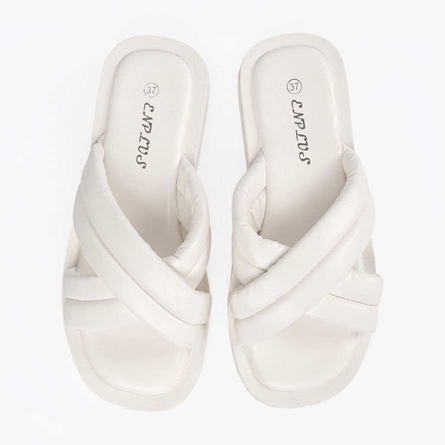 Fabriqué en cuir écologique de haute qualité, la partie extérieure et intérieure de la chaussure garantit non seulement la durabilité, mais aussi le confort de porter toute la journée. Les tongs de couleur blanche sont un incontournable absolu dans chaque garde-robe, car ils se mélangent parfaitement avec des tenues quotidiennes et décontractées et des combinaisons plus élégantes.