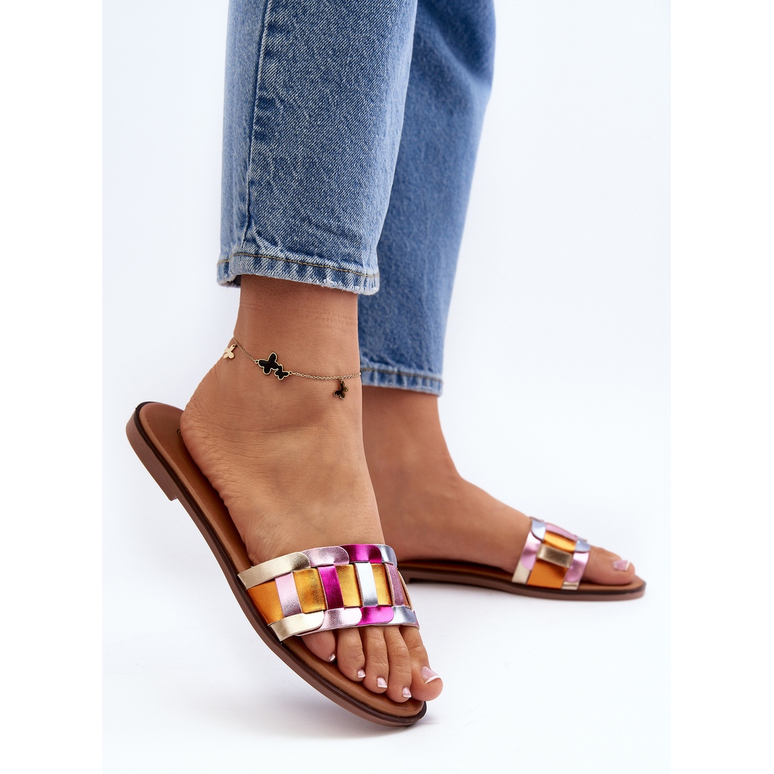 Détails: Tongs Plates Classiques Pour Femmes Multicolores Namrita d'or