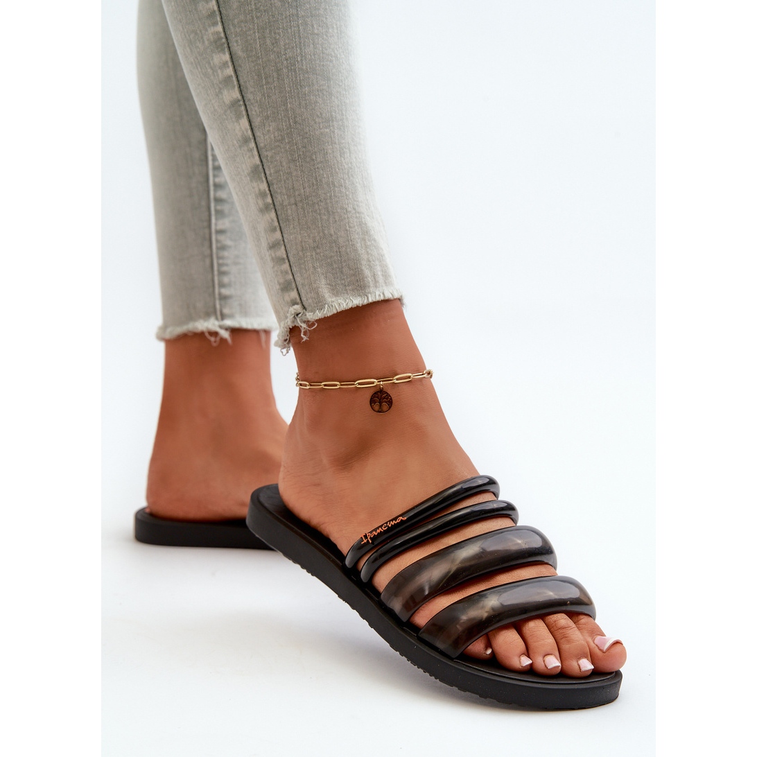 Ipanema Tongs plates en caoutchouc pour femmes 26727 Ipanema Puffer Tiras Fem Noir le noir