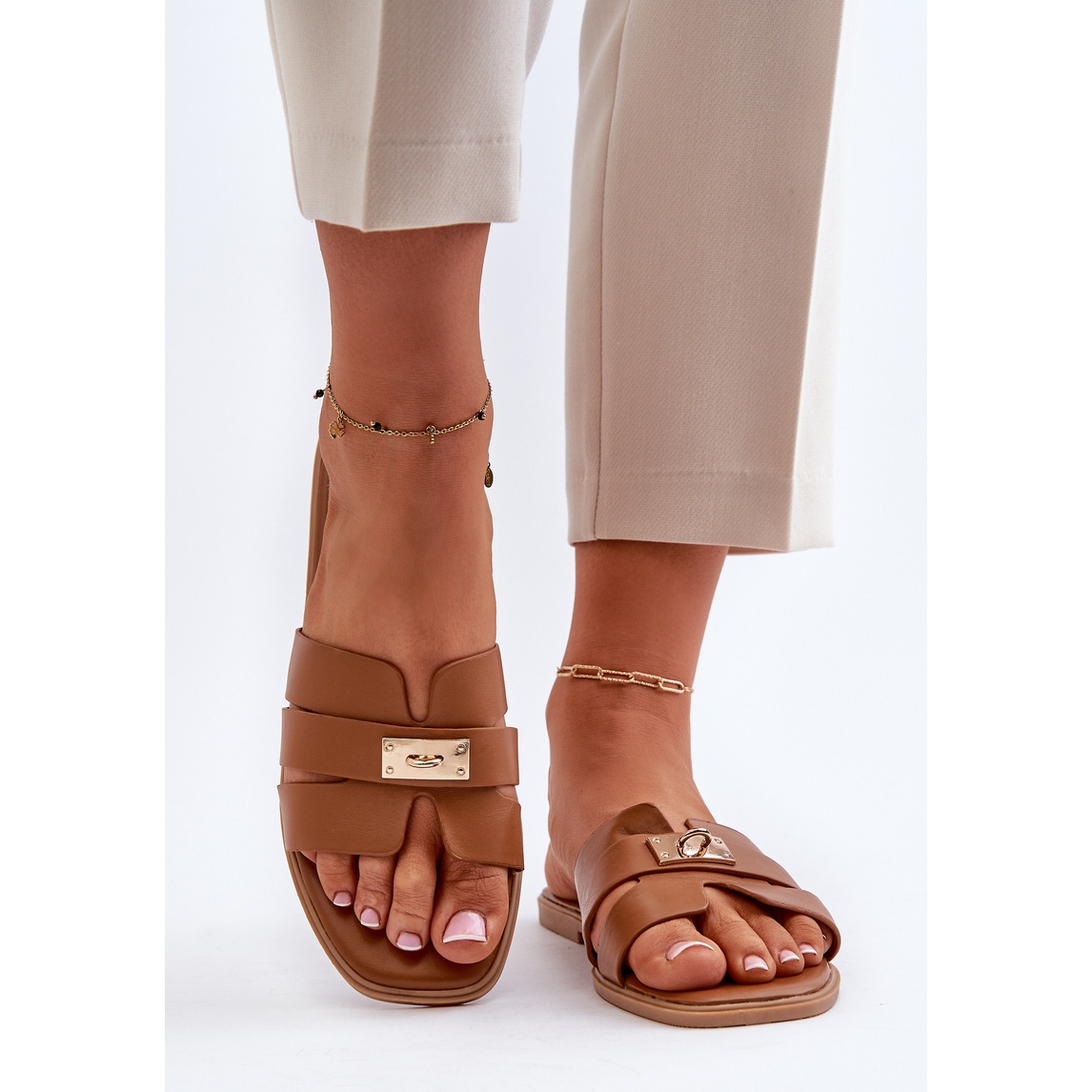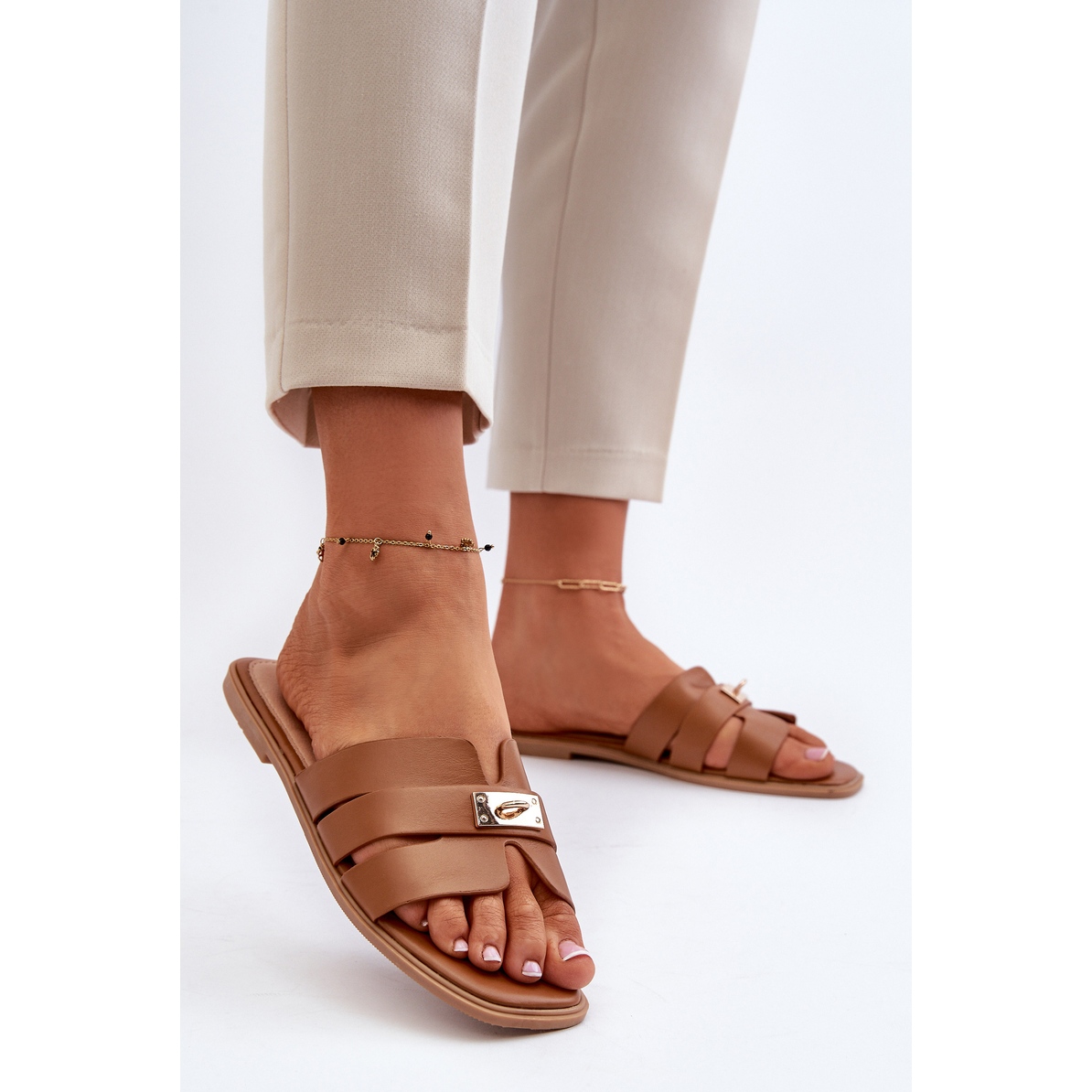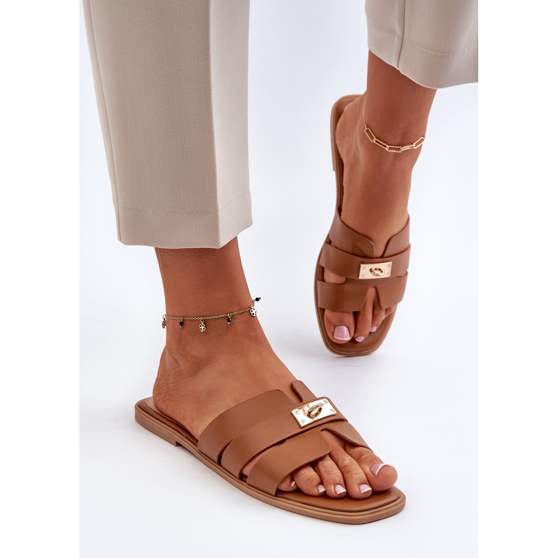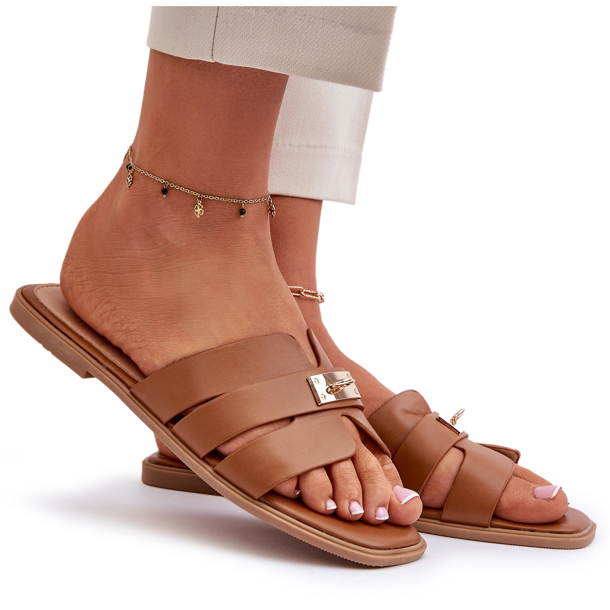 Détails: Tongs plates pour femmes avec décoration Kavinia camel brun