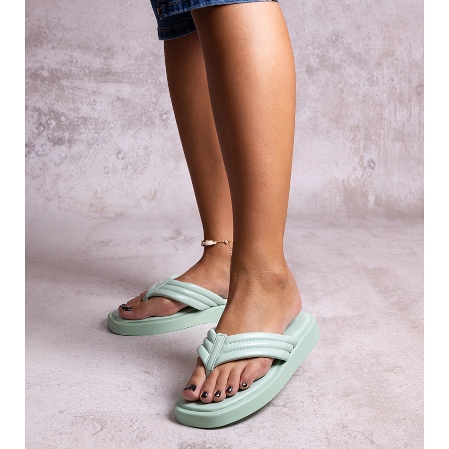 Cependant, ce qui distingue vraiment ces tongs vertes, c'est leur design unique. La couleur du fabricant, définie comme Lt.Green, attire l'attention et ajoute de la fraîcheur aux styles estivaux. Le matériau extérieur en cuir écologique rend les chaussures respectueuses de l'environnement tout en conservant un aspect élégant. De plus, la conception à enfiler des chaussures les rend faciles à mettre et à enlever - une option idéale pour les sorties estivales à la plage ou à la piscine.