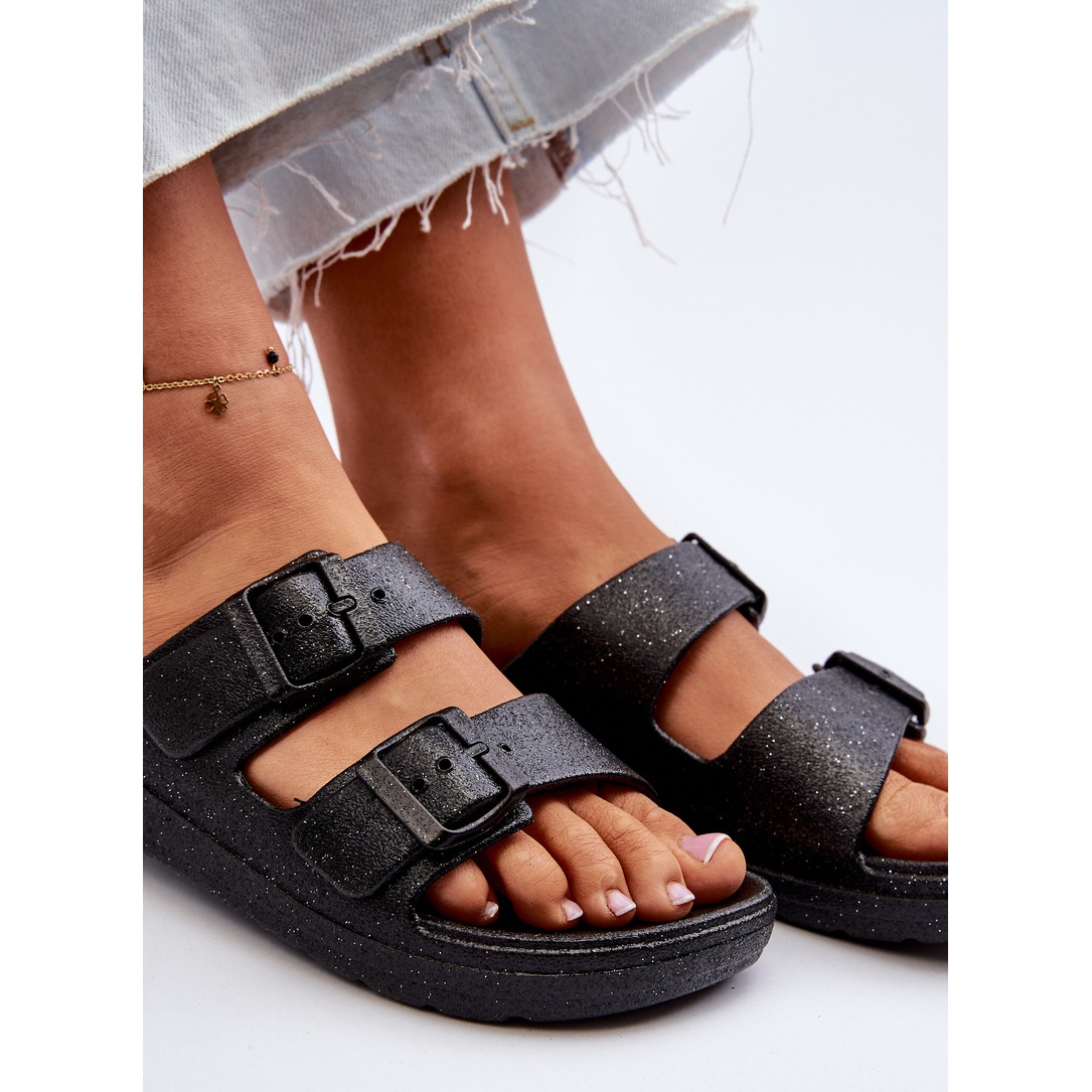 Nous présentons des tongs noires uniques pour femmes avec des paillettes, qui seront le complément parfait à votre garde-robe pour les journées et les soirées plus chaudes. Ce modèle extrêmement élégant attire l'attention par sa finition accrocheuse avec l'ajout de paillettes, qui ajoute une belle brillance. Les tongs à paillettes sont non seulement élégantes, mais aussi confortables, ce qui en fait votre choix préféré pour de nombreuses occasions.
