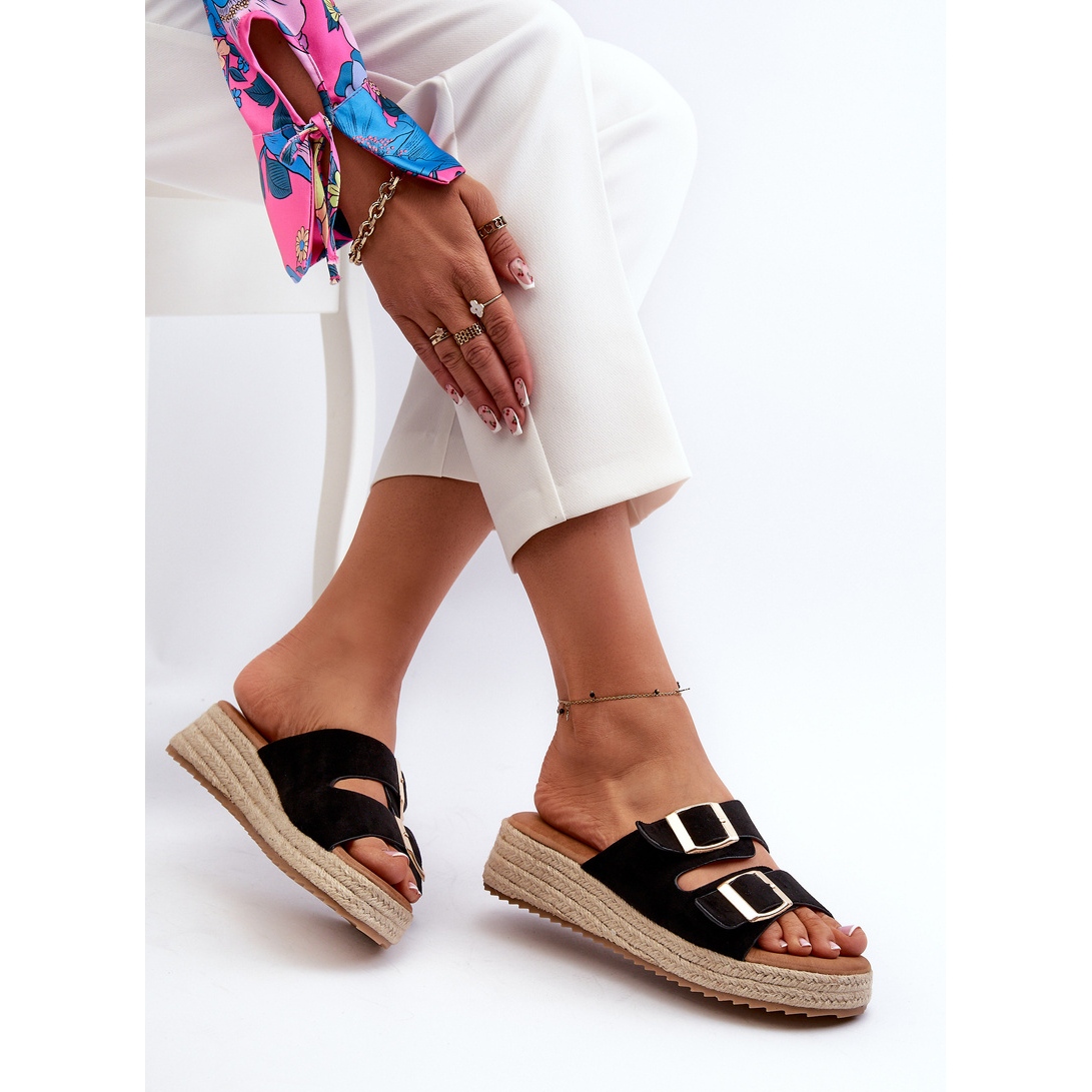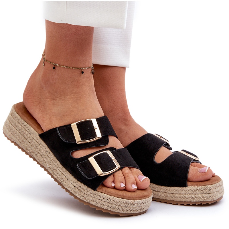 Détails: Tongs Pour Femmes Avec Eco Daim Tressé Noir Zaloemi le noir