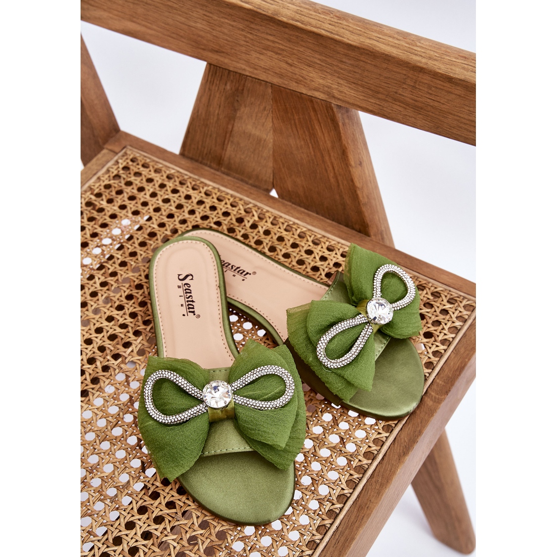 Seastar Seastar Tongs pour femmes avec nœud et zircons, vert