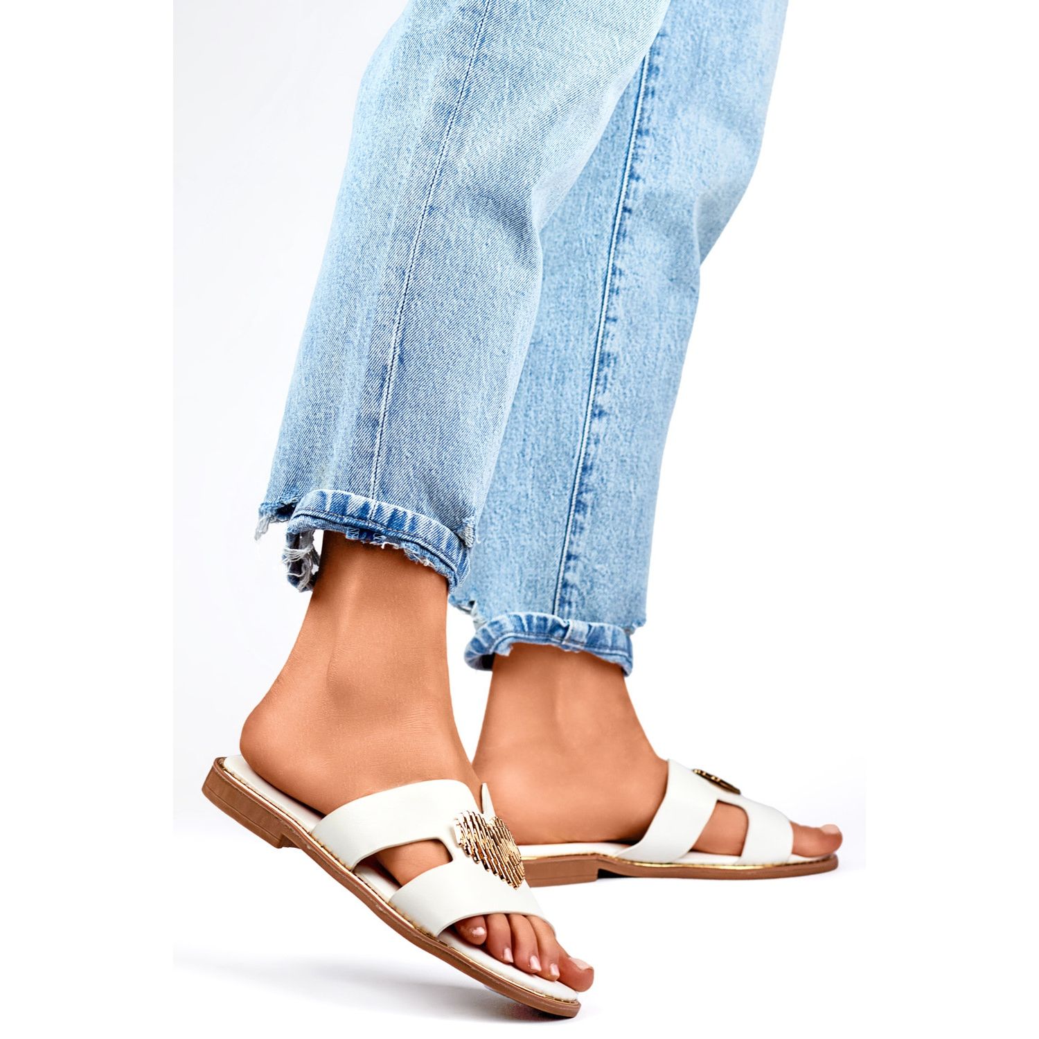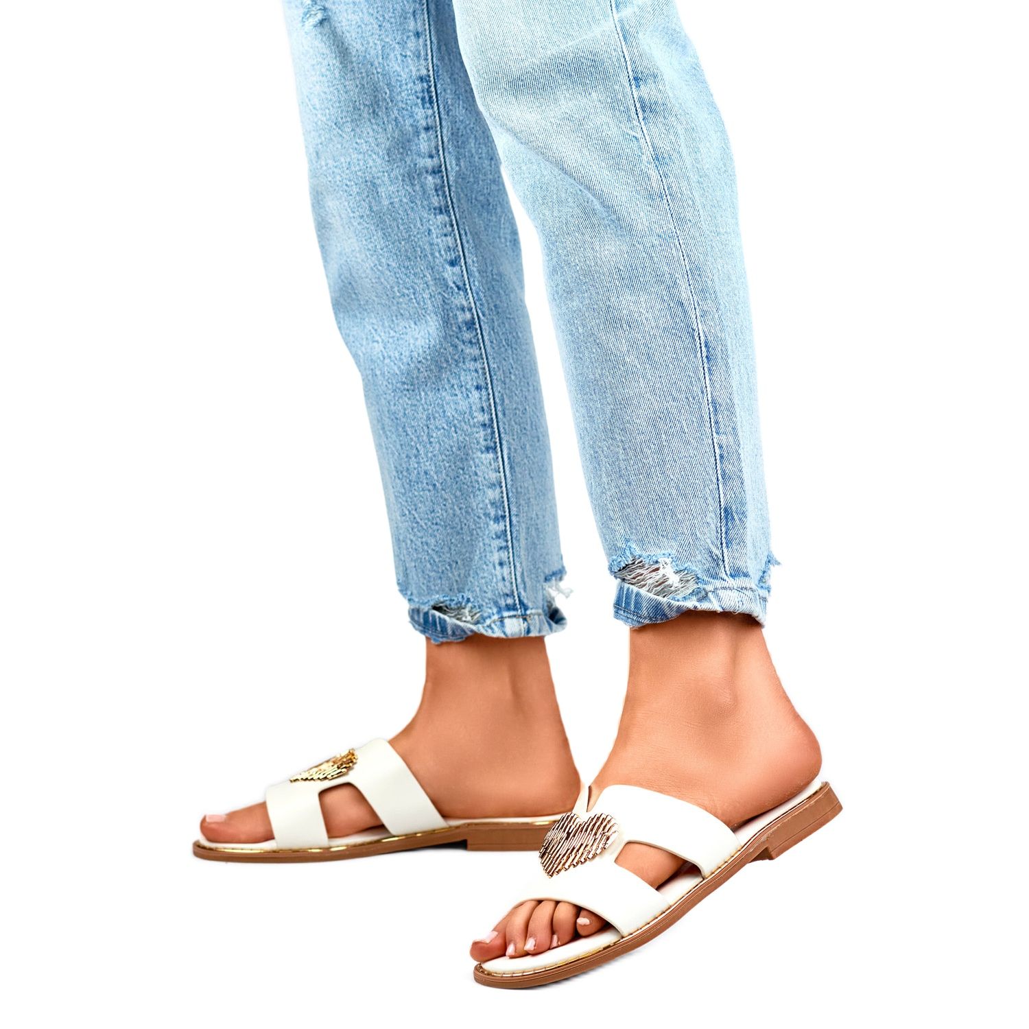 Tongs pour femmes décorées de coeur KK-731W blanc