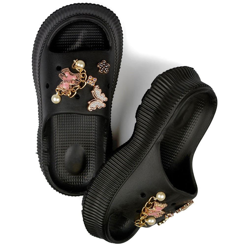 Détails: Tongs pour femmes en caoutchouc noir avec décorations le noir