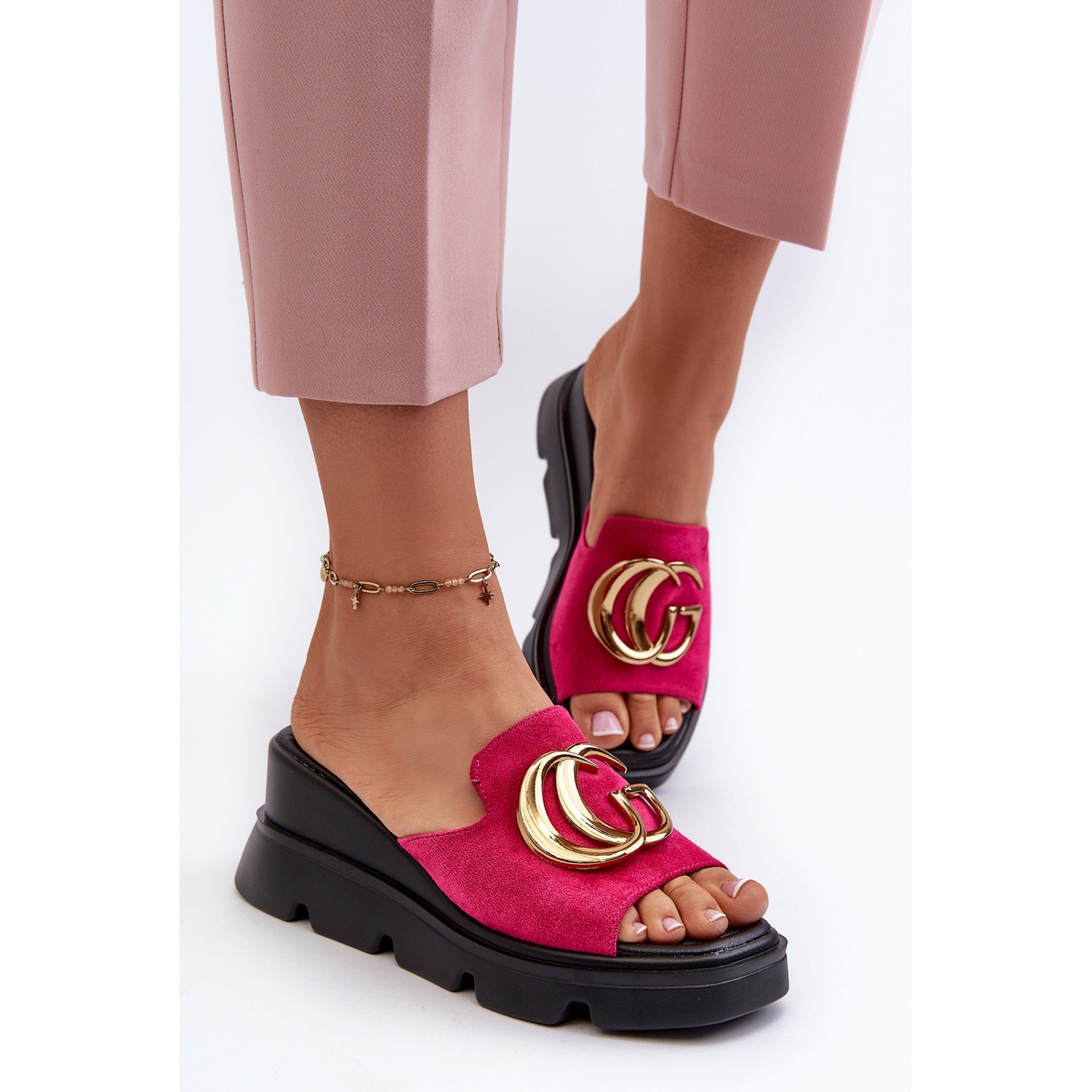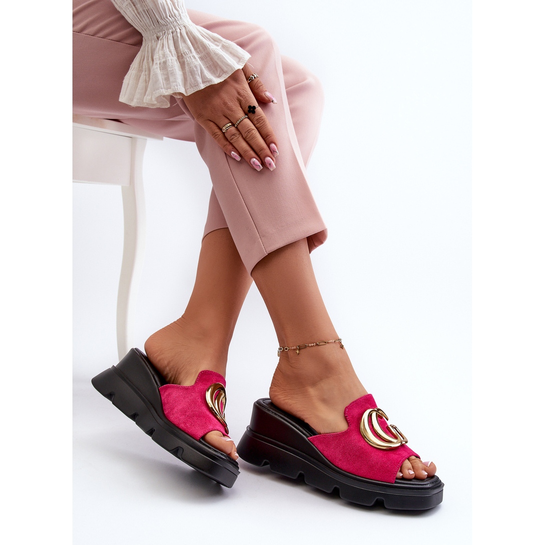 Vinceza Vinceza Tongs pour femmes en suède écologique sur une semelle compensée et une plateforme avec décoration dorée Fuchsia Iaria rose