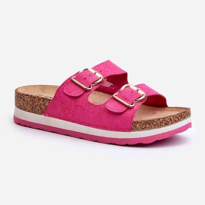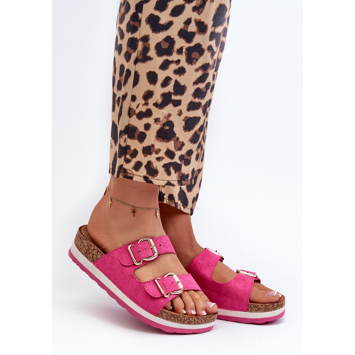 Détails: Tongs Pour Femmes Sur La Plateforme Avec Boucles Eco Daim Fuchsia Ursila rose