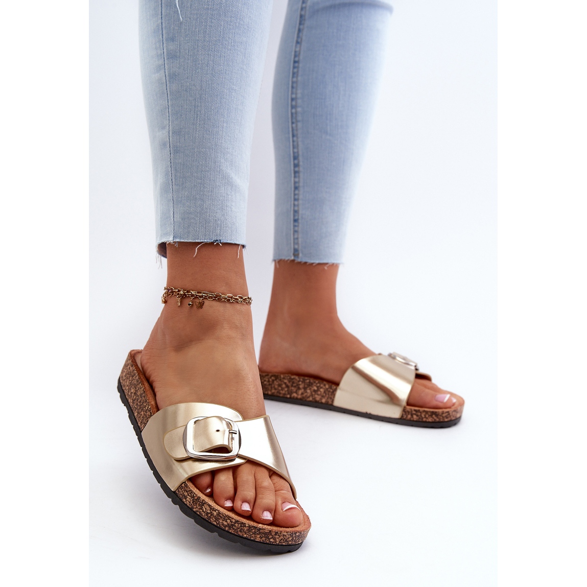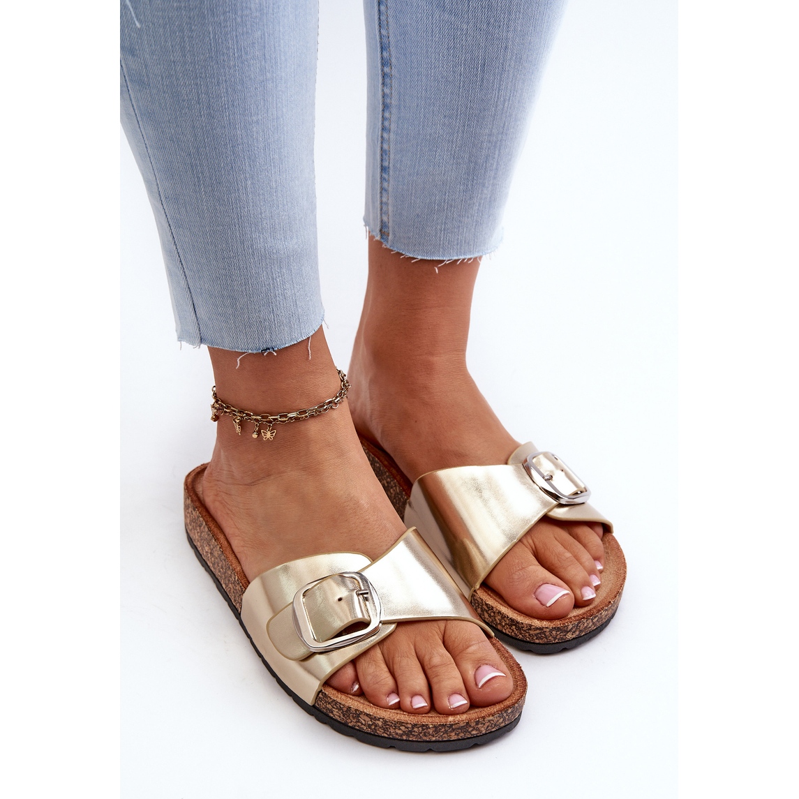 La couleur dorée des tongs attire l'attention et la boucle décorative leur ajoute un caractère unique, ce qui les rend faciles à assortir à de nombreux styles d'été. Les tongs sont montées sur une plateforme en liège de 2,5 cm de hauteur, ce qui assure confort d'utilisation et légèreté dans la marche.