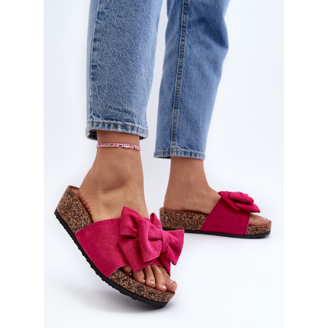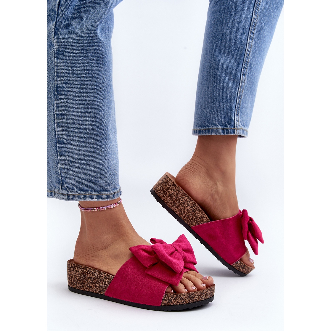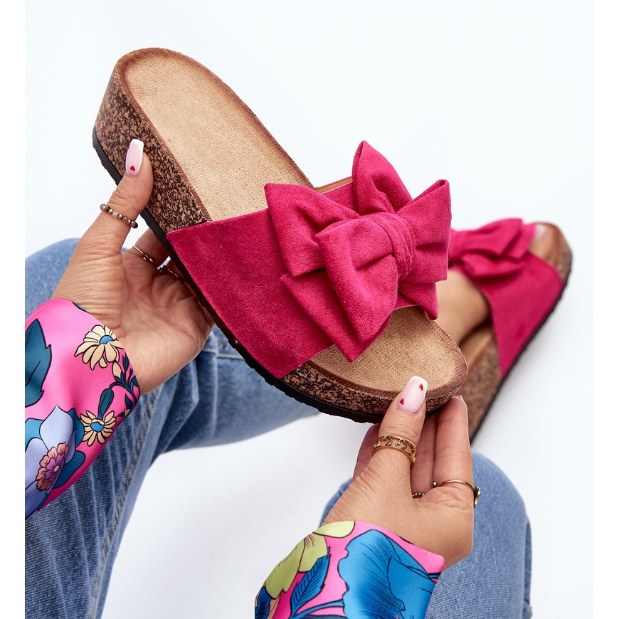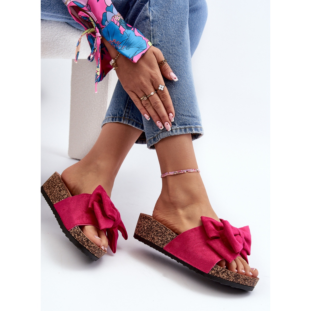 Détails: Tongs pour femmes sur plateforme en liège avec nœud Fuchsia Tarena rose