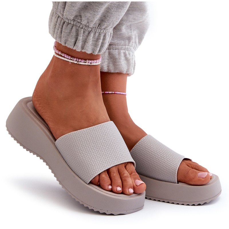 Tongs grises pour femmes sur une plateforme et un coin compensé - Synonymes de style et de confort