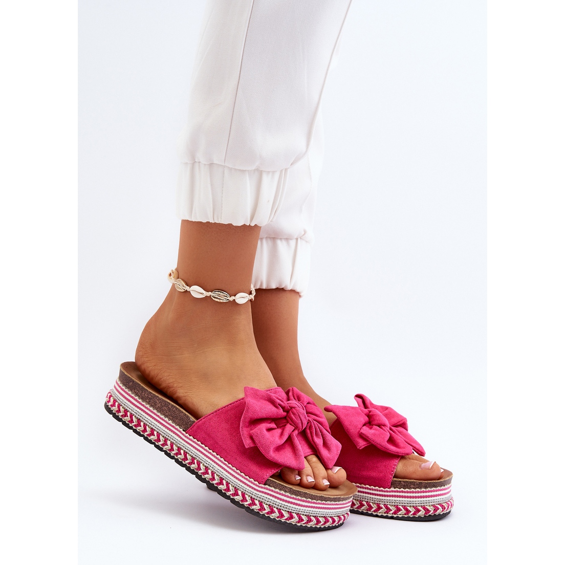 Détails: Tongs Pour Femmes Sur Une Plateforme Avec Un Noeud Fuchsia Evatria rose