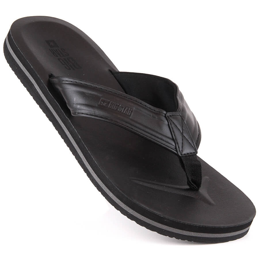 Big Star Tongs pour hommes en cuir écologique noir Big Star LL174605 le noir