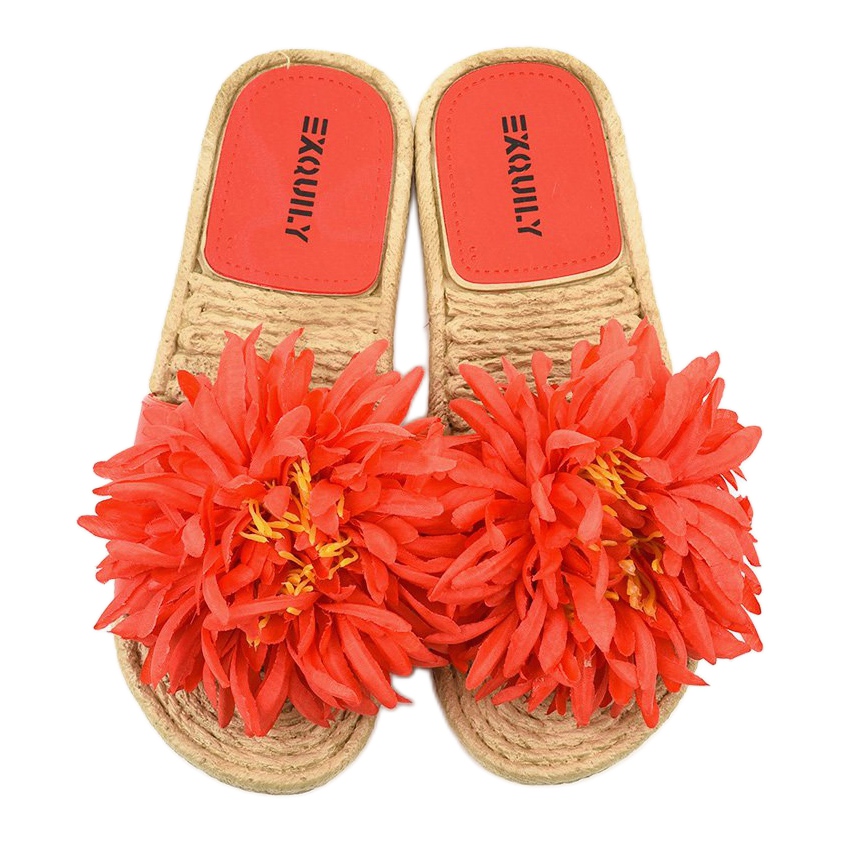 Détails: Tongs rouges avec espadrilles à fleurs CD-1831