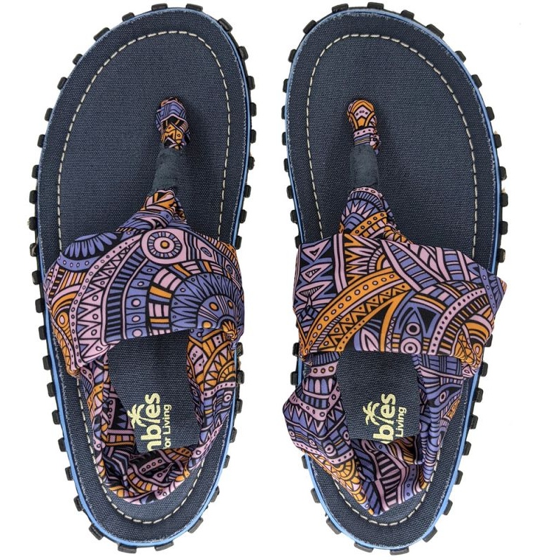 Gumbies Slingback tongs dans les tongs G-Sb-Wn-Aztec-Multi, élégants et confortables pour les femmes qui combinent la légèreté urbaine avec la durabilité d'une structure réfléchie. Le modèle de fronde est une coupe hybride et sportive basée sur l'isulaire unique, enrichie d'une sangle torsadé, décorative mais fonctionnelle en polyester super doux et flexible. Facile à mettre - sans reliure - parfait tous les jours et tous les soirs d'été sur la piste de danse.