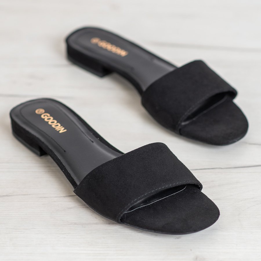 Découvrez l'élégance et le confort grâce au rabat Goodin à talon plat de couleur noire classique. Fabriquées en daim écologique, ces chaussures élégantes allient design moderne et finition de haute qualité.