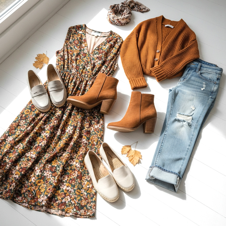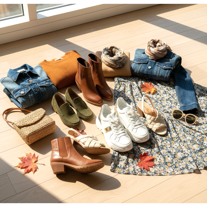 La transition de l’été à l’automne est le moment de passer des sandales, tongs et baskets d’été à des chaussures plus couvertes. Les bottes sont ici le choix parfait : elles peuvent être portées avec des robes d'été et des pantalons plus courts, mais aussi avec des jeans et des styles plus automnaux. Les espadrilles sont une autre option qui convient aussi bien aux tenues d'été qu'à celles d'automne. S'il fait encore chaud, vous pouvez porter des chaussures légères. La clé est d’avoir des paires qui feront la transition entre les deux saisons sans nécessiter une refonte complète de la garde-robe.