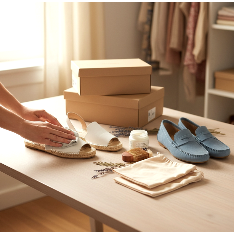 Avant de ranger vos chaussures d'été pour la saison, assurez-vous qu'elles sont propres et sèches. Toute trace de saleté ou de sueur peut entraîner des taches ou des odeurs permanentes. Essuyez-les avec un chiffon propre et laissez-les sécher complètement. Si vos chaussures sont en daim ou en cuir, appliquez une lotion protectrice. N'oubliez pas de les conserver dans un endroit frais et sec, jamais en plein soleil, car cela pourrait décolorer les chaussures. Si vous le pouvez, rangez-les dans des boîtes ou des sacs en tissu pour les protéger de la poussière.