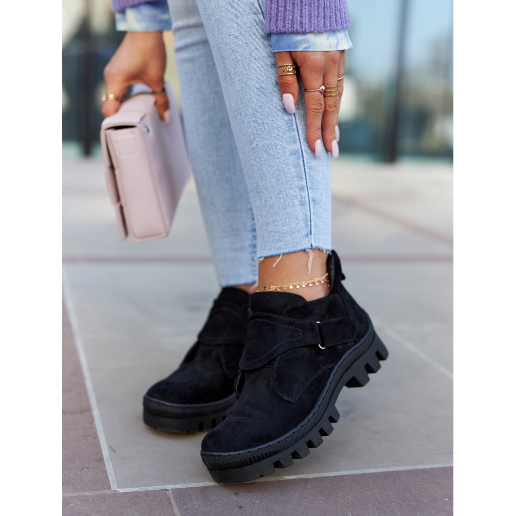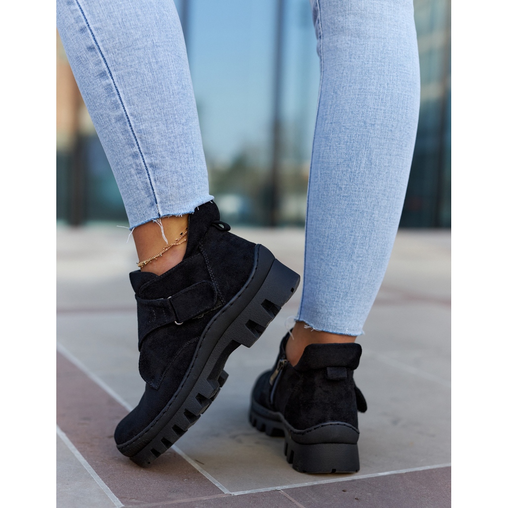 Les chaussures sont équipées d'une fermeture éclair latérale pratique qui les rend plus faciles à enfiler et à enlever, et un fermeture scratch supplémentaire ajoute de la fonctionnalité. Le bout rond et le talon rigidifié garantissent non seulement l'esthétique, mais également un maintien adéquat du pied. Il y a un bootstrap à l'arrière de la tige, ce qui facilite encore plus leur enfilage.