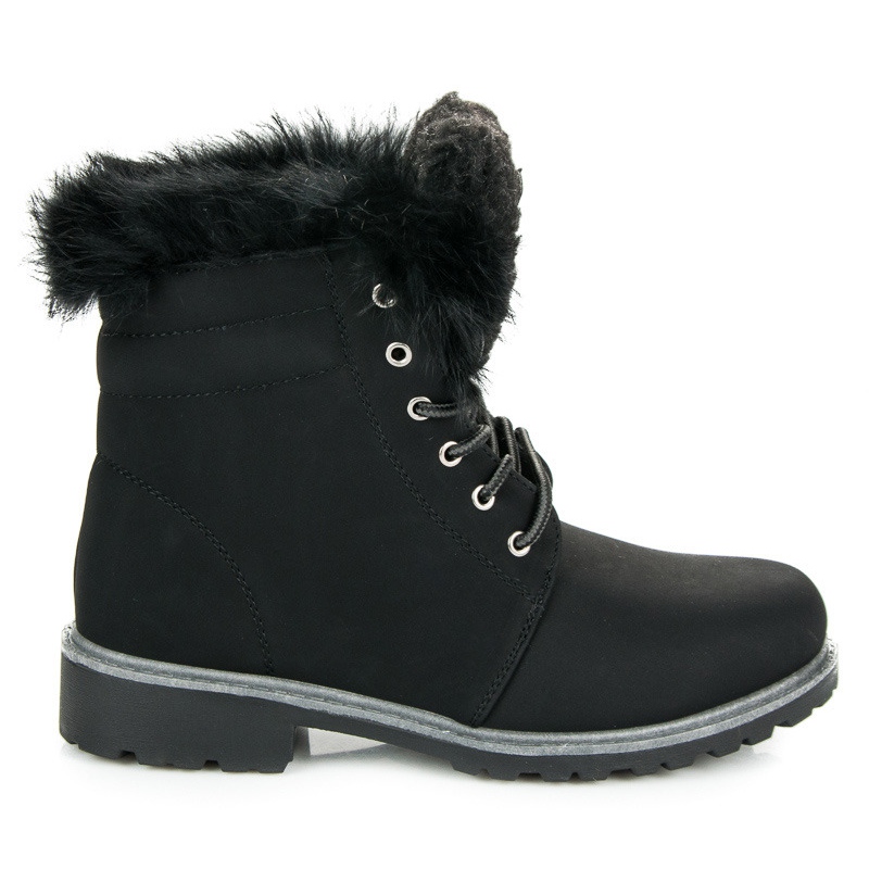 Détails: Trappeurs À Lacets Avec Fourrure noir