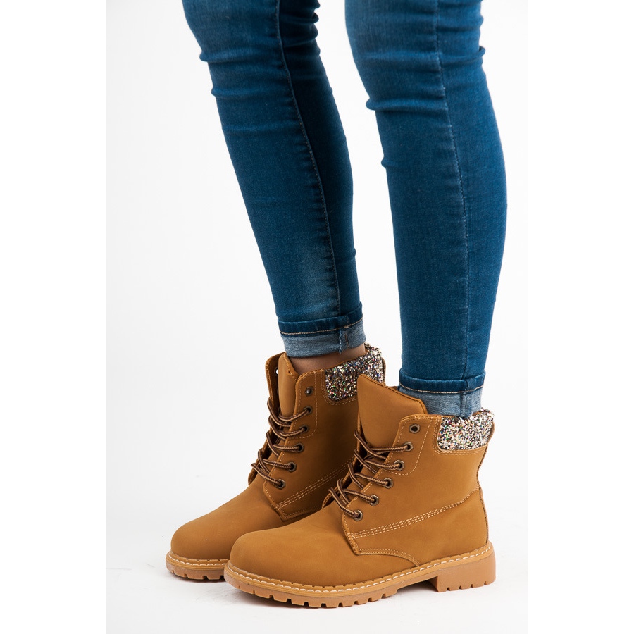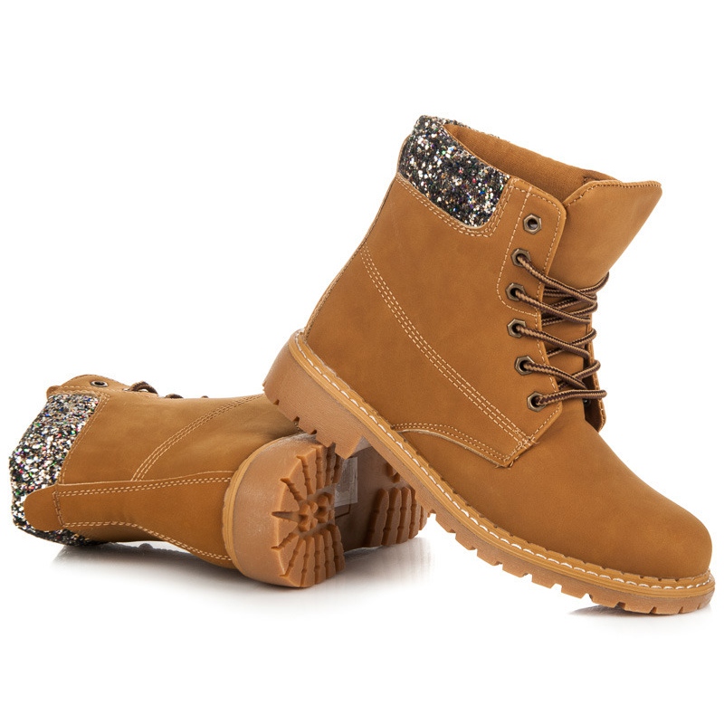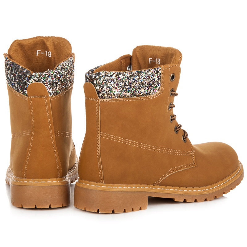 Découvrez des baskets marron insolites à paillettes d'Inna, qui complèteront parfaitement le style de n'importe quelle femme. Leur accent élégant et brillant les distingue des modèles classiques, tout en conservant un confort de port grâce à un talon plat de 3,5 cm de hauteur.