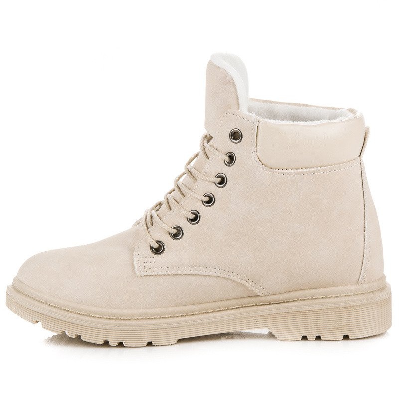 Fabriquées avec des matériaux de haute qualité, les baskets se caractérisent par une semelle en caoutchouc qui offre une excellente adhérence sur diverses surfaces, et leur intérieur isolé assurera un confort même pendant les jours les plus froids. La couleur beige associée à un talon plat et un bout rond leur confèrent un caractère universel, ce qui signifie que vous pourrez facilement les combiner avec de nombreux styles, du plus décontracté au plus élégant.