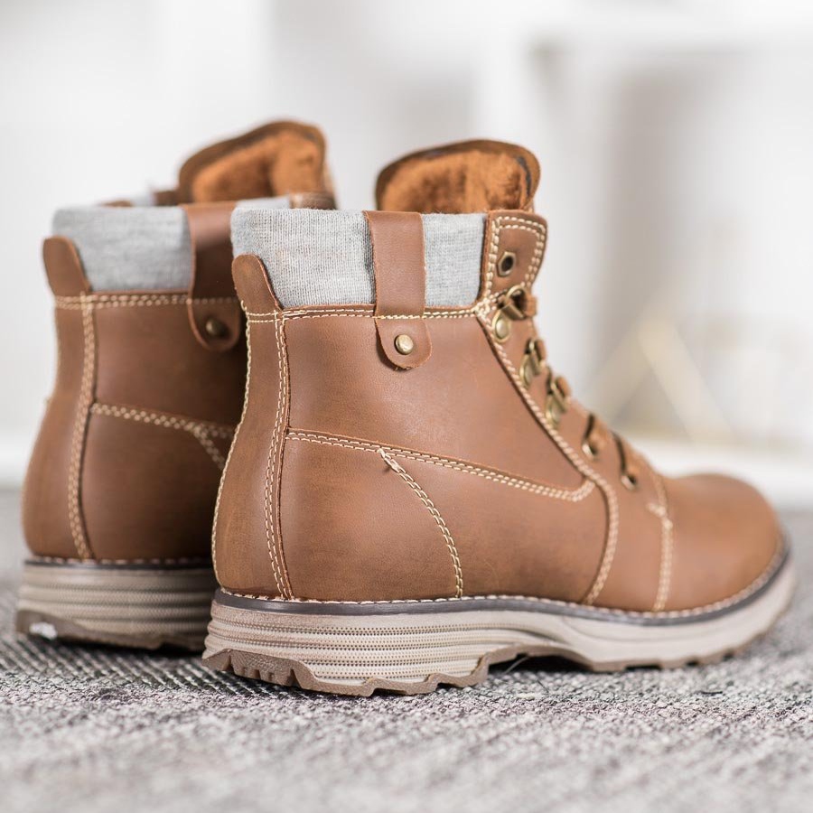 La tige arrivant au-dessus de la cheville, avec un laçage pratique, permet un ajustement parfait au pied, ce qui augmente le confort de port, notamment lors de longues promenades. Une semelle solide en matière synthétique avec bande de roulement offre une excellente adhérence, ce qui en fait un choix idéal pour les journées d'automne et d'hiver.