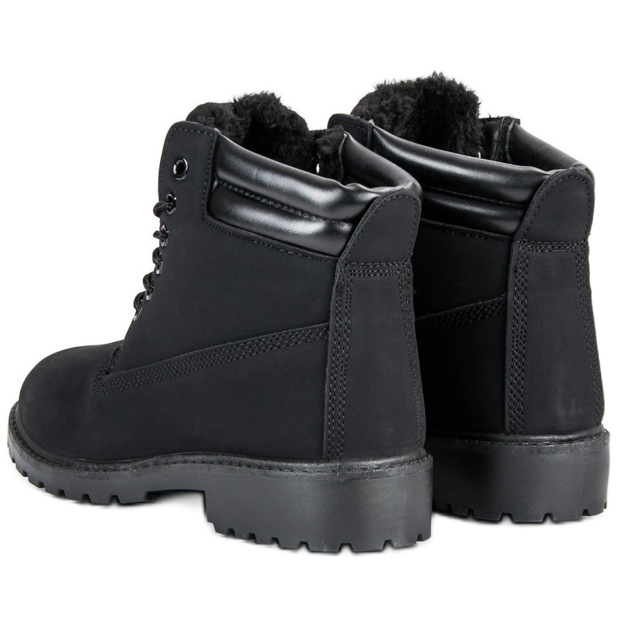 Les trappeurs isolés noirs sont fabriqués à partir de matériaux de haute qualité, ce qui garantit leur durabilité. La semelle avec bande de roulement, en matière synthétique, garantit des marches sûres sur diverses surfaces. Les chaussures à lacets permettent un ajustement facile au pied, ce qui augmente le confort d'utilisation.