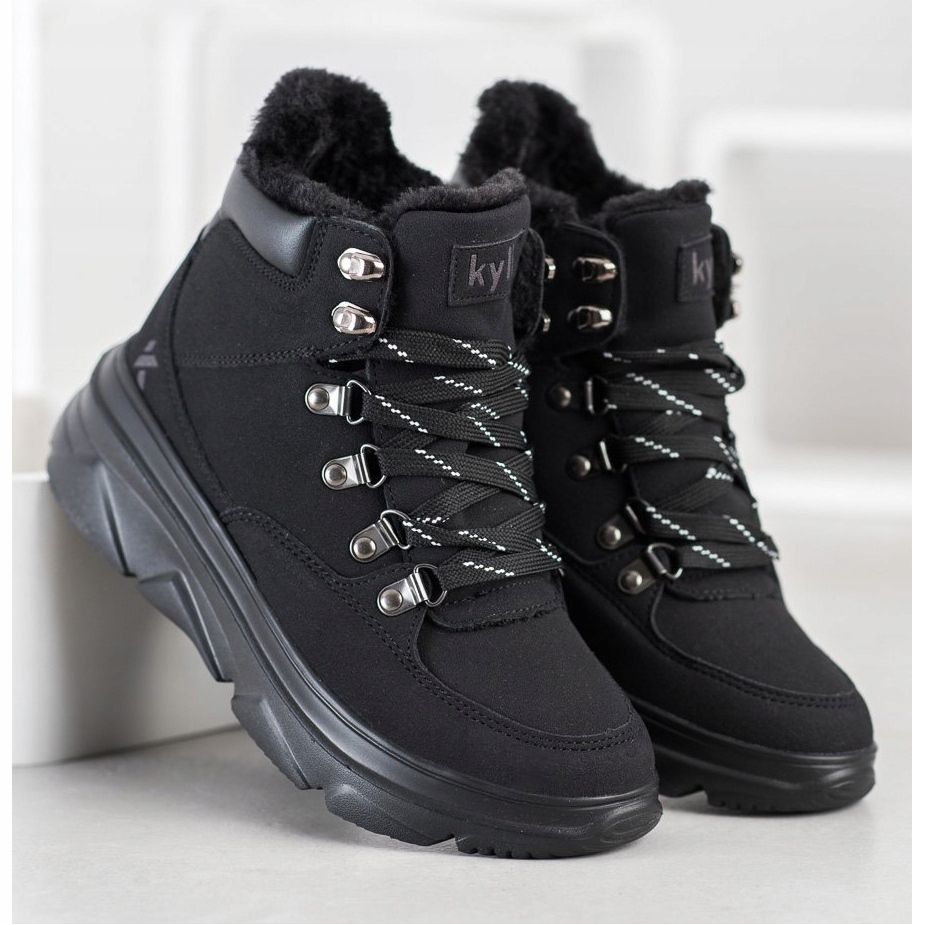Découvrez le style et le confort avec les pièges à plateforme légers de la marque Kylie. Ces bottines noires sont la combinaison parfaite d'élégance et de décontraction sportive, parfaites pour un style quotidien. Fabriqués en simili cuir de haute qualité, ils sont non seulement esthétiques, mais également respectueux de l'environnement.