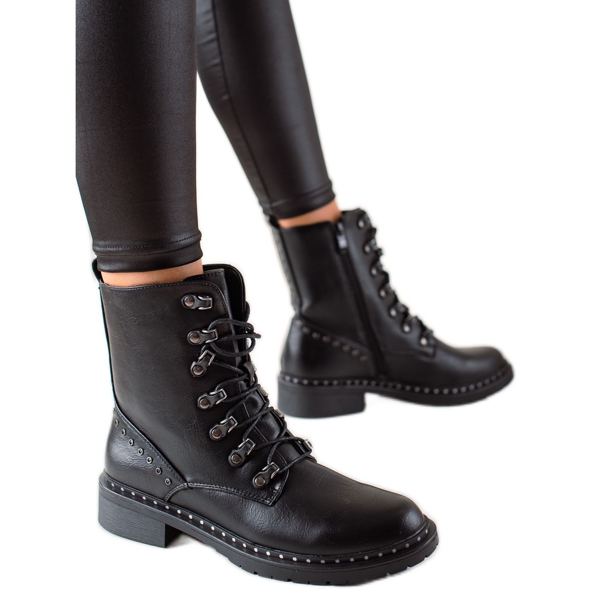 À l'intérieur des bottes se trouvent une isolation et un insert textile qui garderont vos pieds au chaud même par temps froid. Les strass sur la tige leur donnent un look unique et tendance qui attirera certainement l'attention. La fermeture éclair et les lacets permettent un enfilage facile et rapide des chaussures.