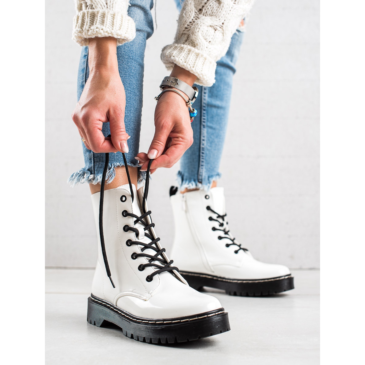 - Élégant et universel - Les trappeurs blancs ajouteront de la fraîcheur aux stylisations de tous les jours, et la finition verni mettra l'accent sur la nature de la tenue.