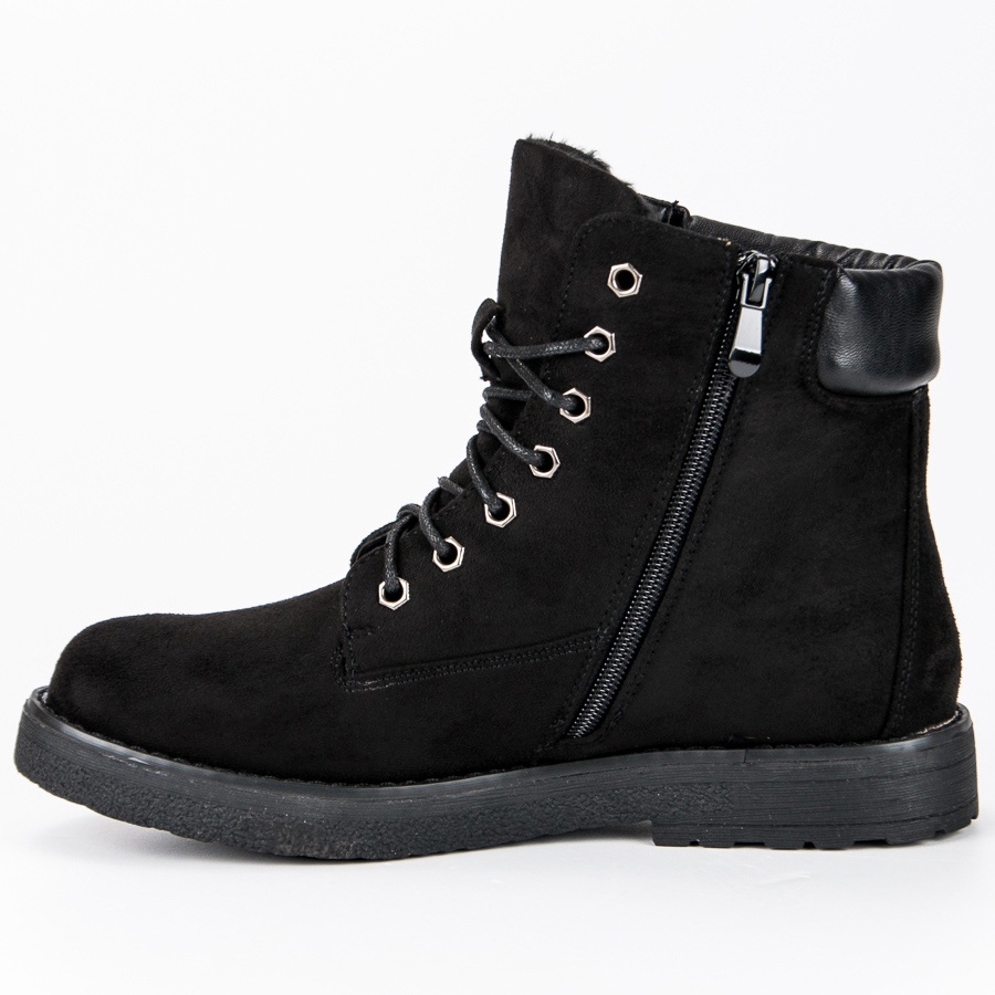 Les chaussures sont fermées par une fermeture éclair pratique et équipées en plus de laçage, assurant un ajustement parfait au pied. Le talon plat de 2 cm de haut garantit un port confortable tout au long de la journée. Le daim écologique à partir duquel ces bottes sont fabriquées est non seulement esthétique, mais aussi respectueux de l'environnement.