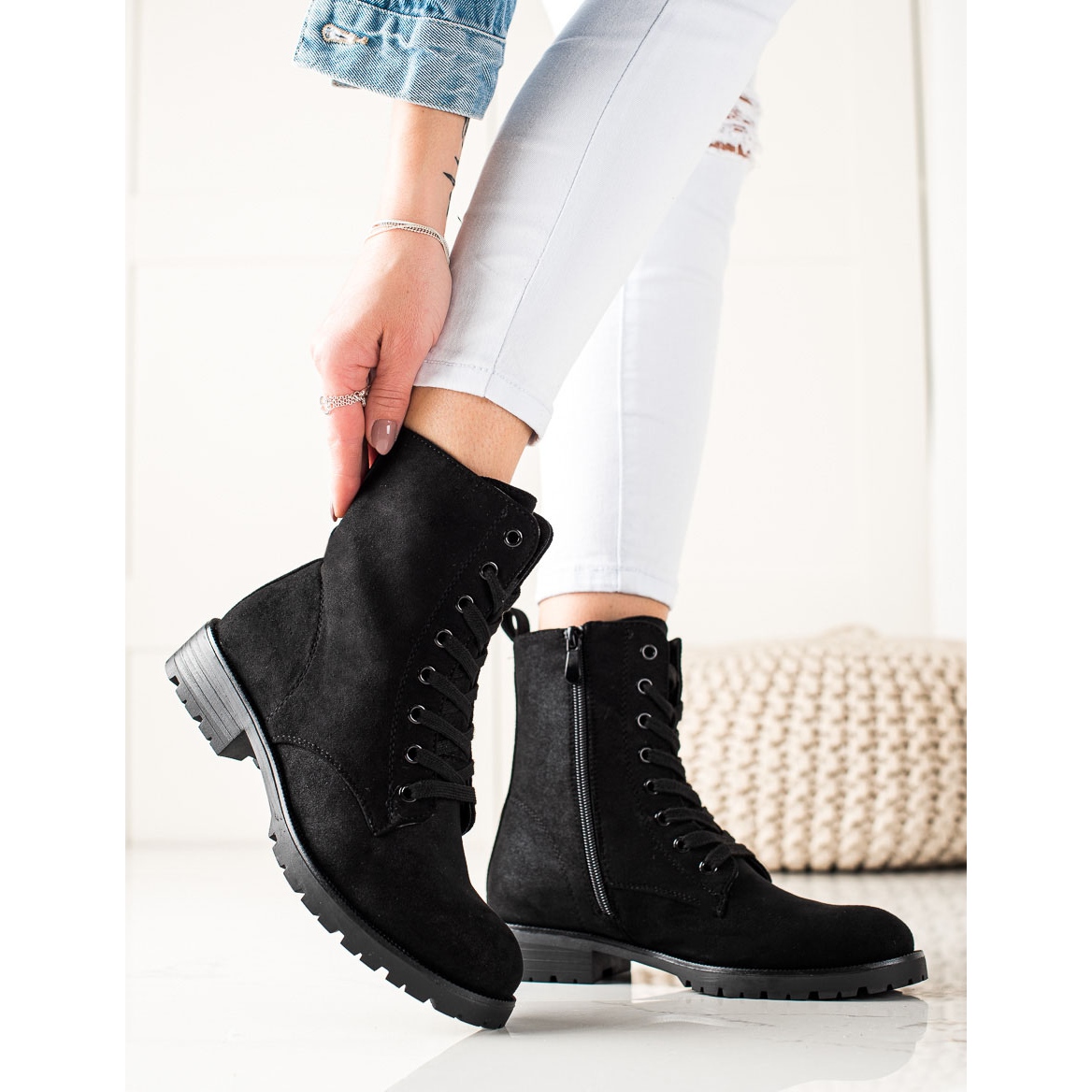 Les bottes en daim sont un complément parfait au style de tous les jours et peuvent être combinées avec des jeans et des jupes. La fermeture éclair et le laçage permettent un enfilage facile et un ajustement parfait au pied.