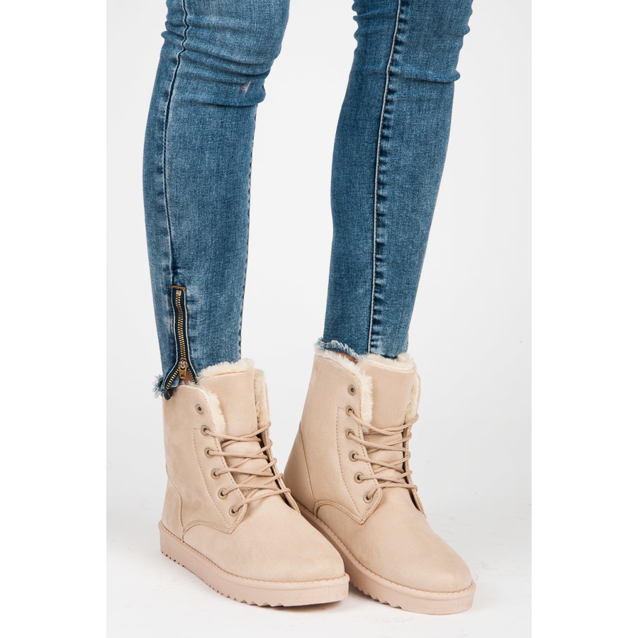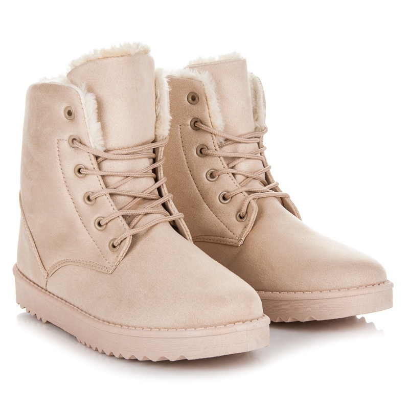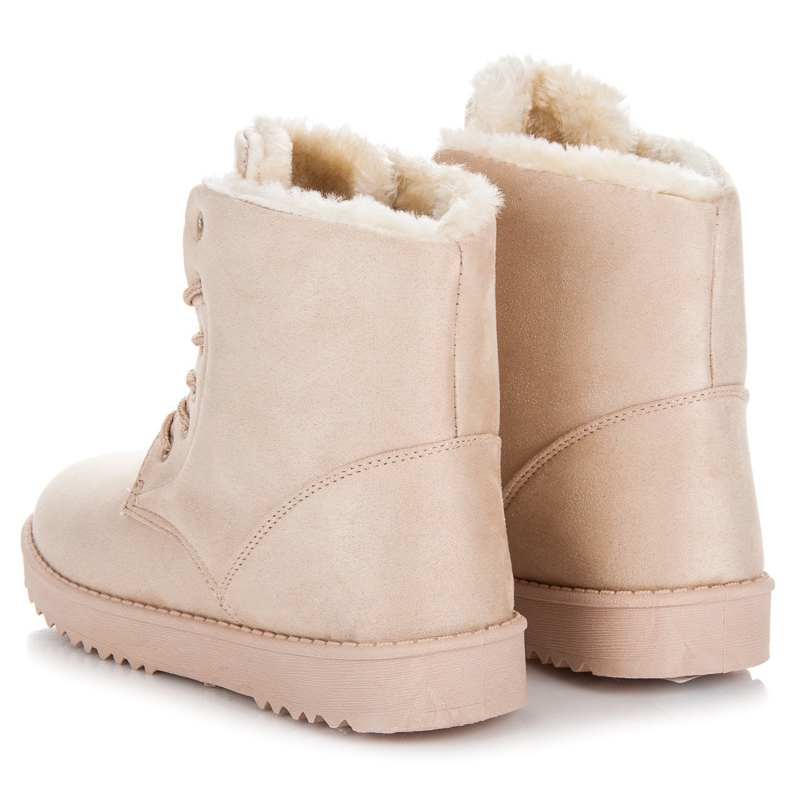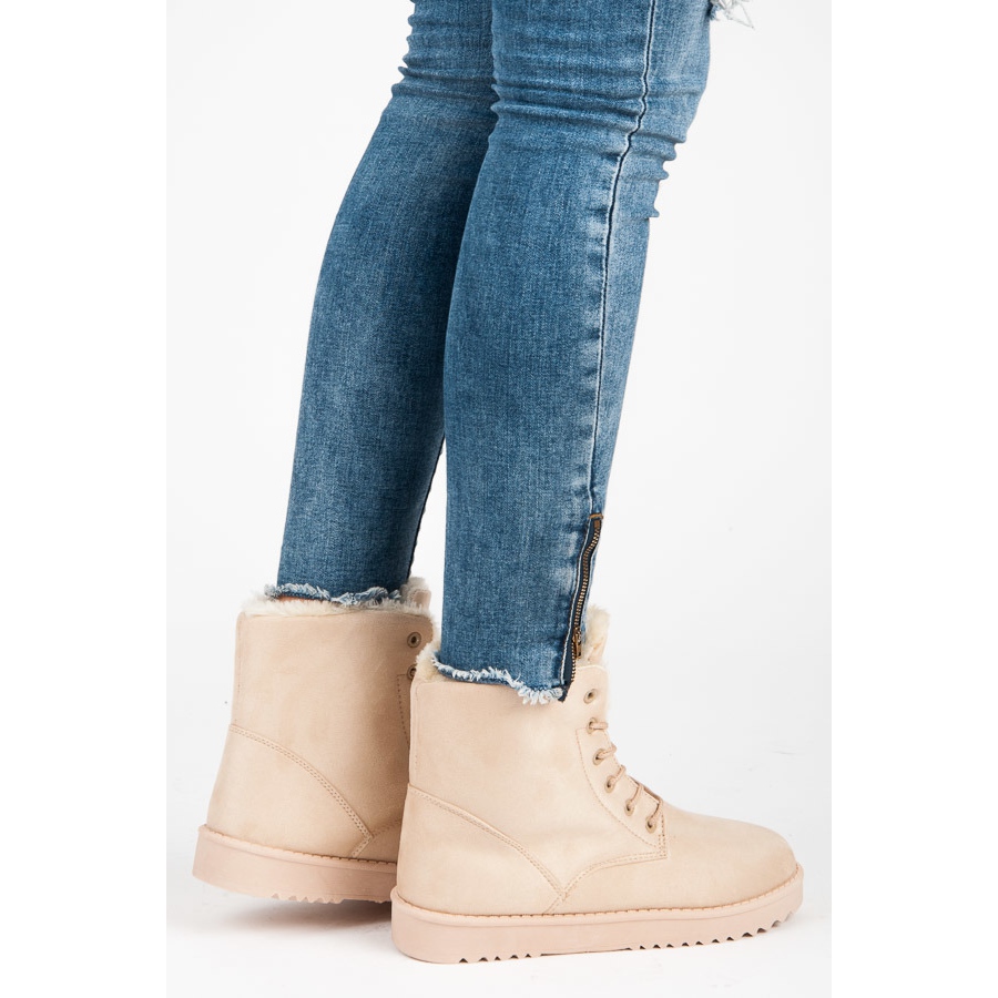 Les chaussures ont un talon plat d'une hauteur de 2,5 cm, ce qui assure confort de port et stabilité lors des déplacements sur terrains difficiles. Leur semelle en plastique solide et épaisse protège non seulement contre les pertes de chaleur, mais possède également d'excellentes propriétés antidérapantes, ce qui en fait un choix idéal pour l'automne et l'hiver. La fermeture à lacets classique permet d'ajuster facilement les chaussures au pied tout en assurant un confort de port.