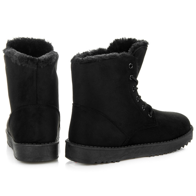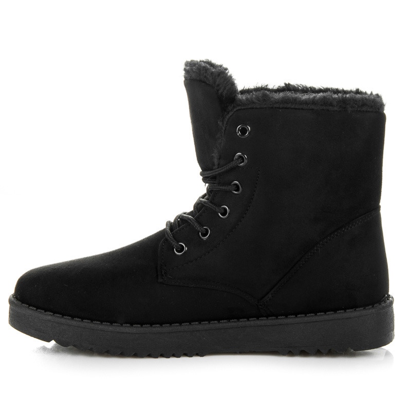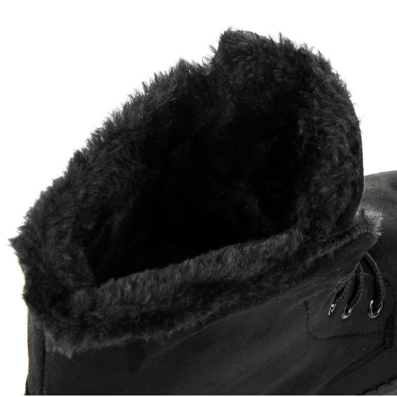 Fabriquées en cuir suédé écologique, ces bottines noires sont non seulement agréables au toucher, mais également faciles à entretenir. Ils ont un talon plat d'une hauteur de 3,0 cm, ce qui les rend confortables même lorsqu'ils sont portés longtemps. La fermeture à lacets permet un ajustement parfait au pied, ce qui est extrêmement important pour le confort d'utilisation.