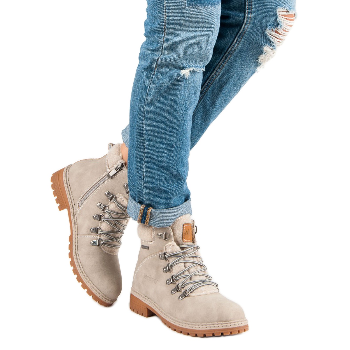 Les bottes trappeurs sont extrêmement tendance grâce à leurs lacets ornés de motifs blancs et argentés qui leur donnent du caractère. Elles sont dotées d'une semelle en plastique marron avec un profil profond, assurant une adhérence adéquate sur les surfaces glissantes. De plus, leur bout arrondi et leur talon plat de 2,5 cm garantissent un confort de port tout au long de la journée.