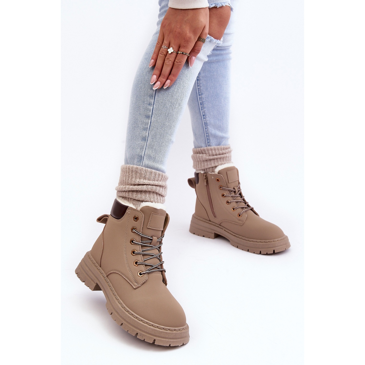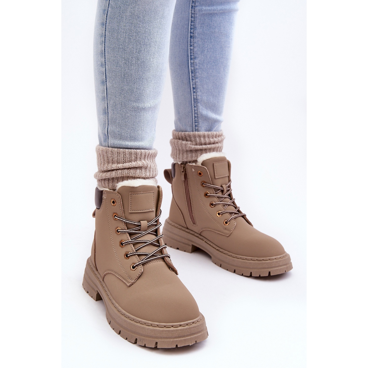 Ce produit, bien que d'une marque différente, représente les normes de production de qualité les plus élevées. Nos bottes ont été conçues pour les femmes qui recherchent une combinaison de fonctionnalité et de design tendance. La couleur beige avec des éléments supplémentaires dans les tons marron, la semelle en caoutchouc, le bout rond et les détails en fourrure ajoutent un charme unique à l'ensemble.