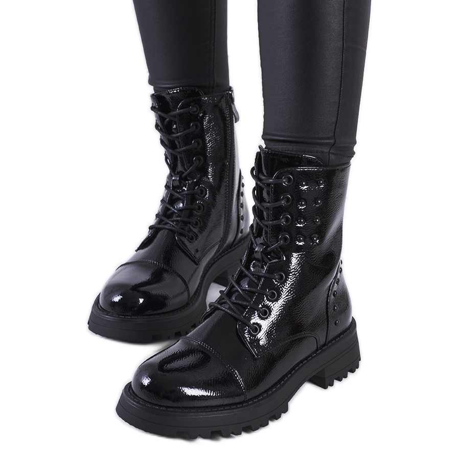 Les trappeurs Polperro élégants et vernies sont une proposition pour les femmes qui recherchent une combinaison d'apparence à la mode avec un confort d'utilisation. Fabriquée en cuir écologique de haute qualité, avec une doublure douce et chaude, ils fonctionneront surtout pendant la saison d'automne / hiver. Un nez soigné et arrondi et un talon plat avec une hauteur de 4 cm de garantie de stabilité et de confort de l'usure.