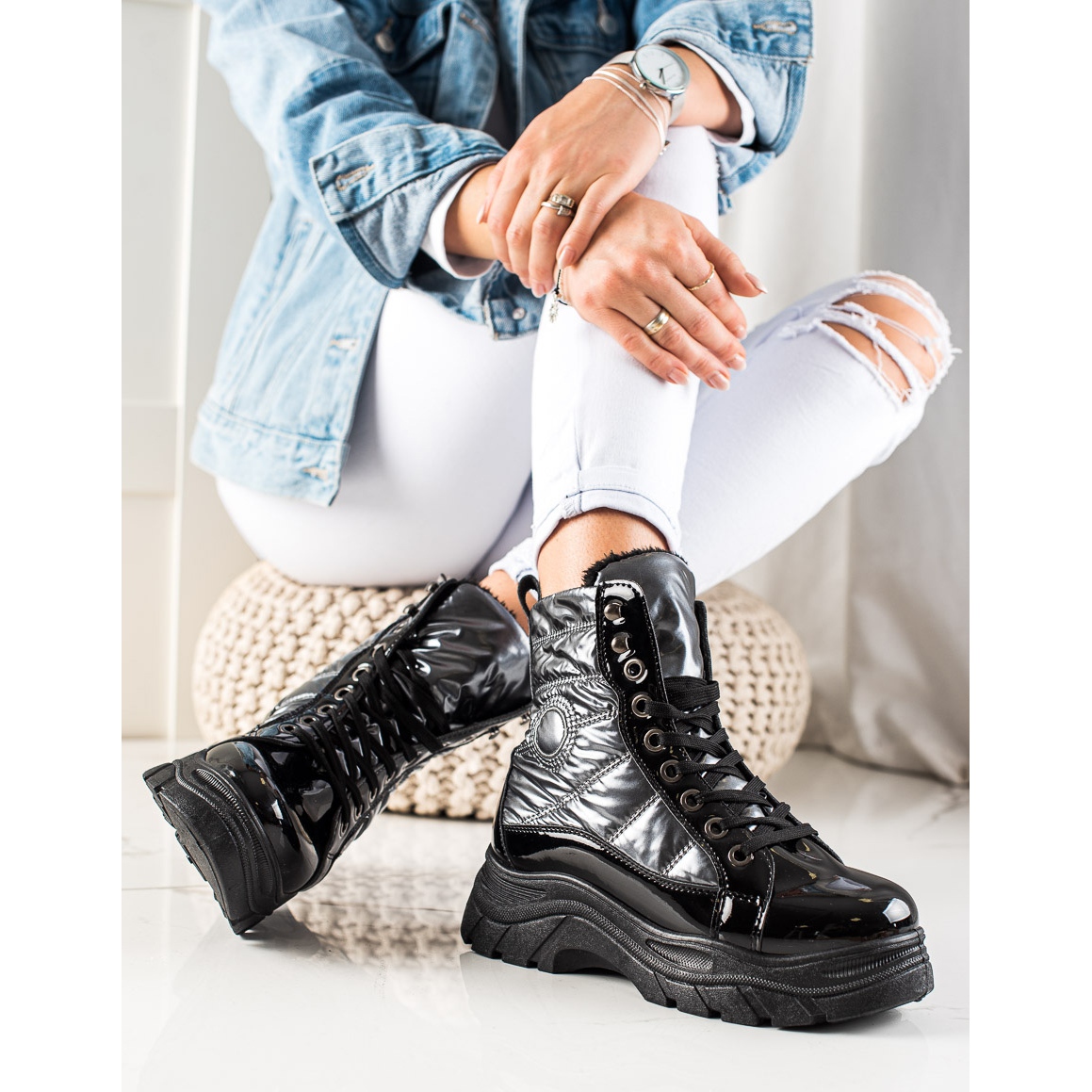 Détails: TRENDI Trappeurs matelassés à la mode le noir argent