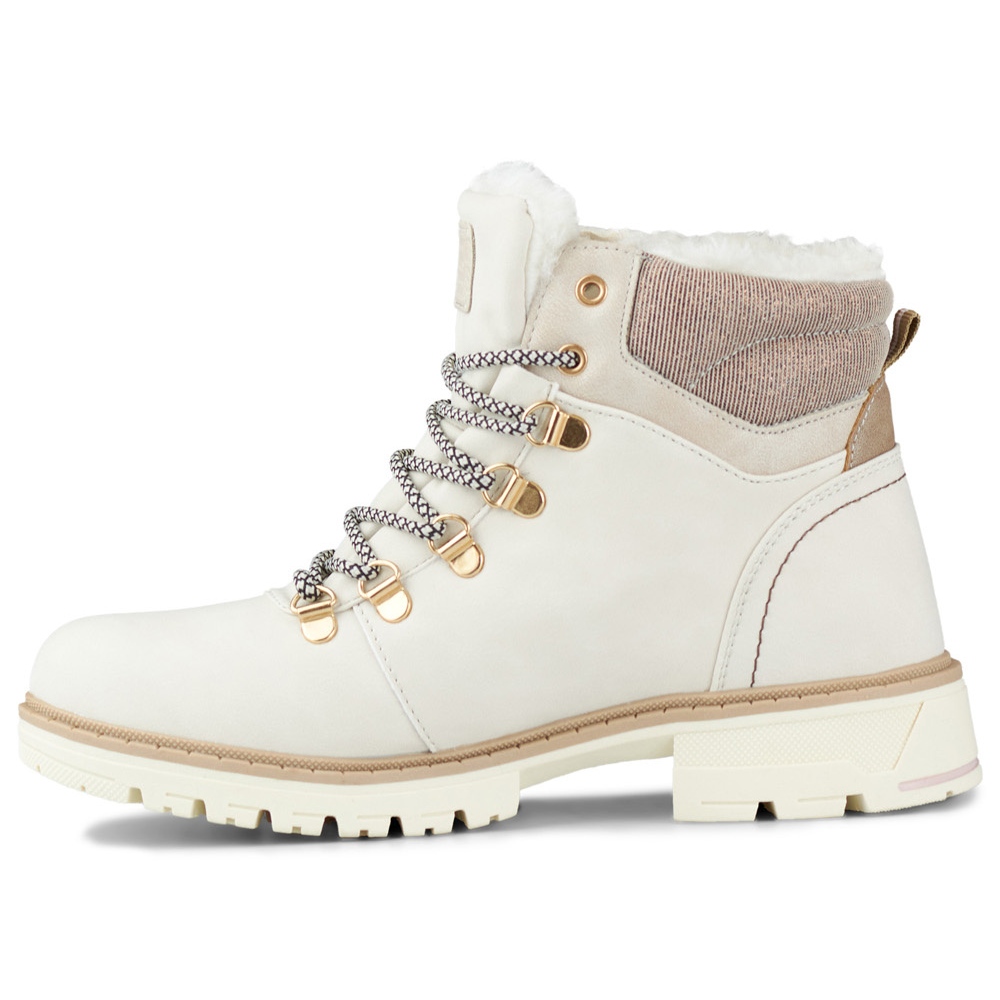 Les trappeurs ont été enrichis de laçage pratique, ce qui vous permet de vous adapter facilement aux besoins individuels et garantit une prise de jambe parfaite. Le nez rond offre la liberté de mouvement, grâce à laquelle ces chaussures fonctionneront dans de nombreux styles - à la fois décontractée et plus élégante.