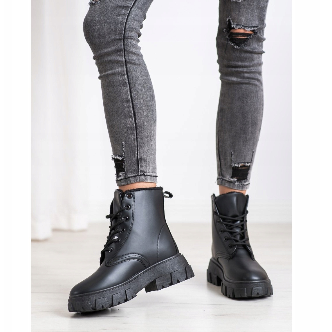L'intérieur des chaussures est doublé en matière textile, ce qui garantit une sensation de chaleur et de plaisir les jours les plus froids, et la hauteur supérieure qui dépasse la cheville (environ 13-14 cm) ajoute de l'élégance et protège les pieds du froid. À son tour, la semelle synthétique avec bande de roulement offre une bonne adhérence, ce qui est inestimable les jours d'hiver.