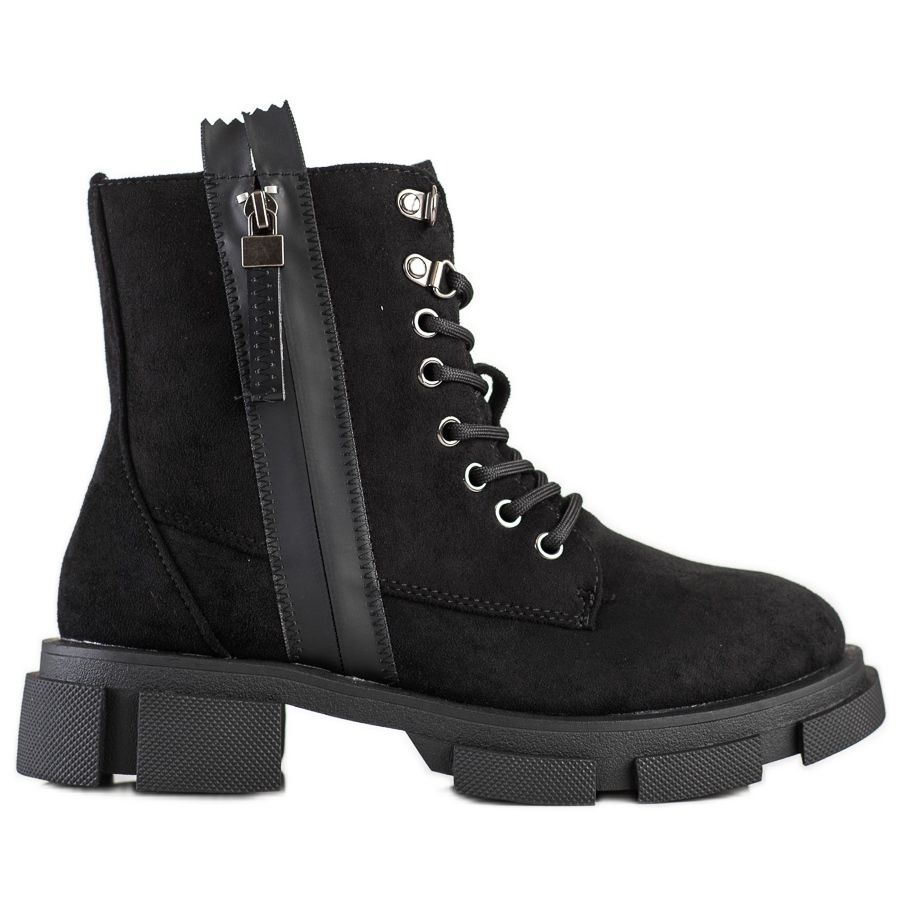 Fabriquées en imitation daim de haute qualité, les bottes sont durables et d'apparence attrayante. La fermeture éclair décorative leur donne du caractère et s'adapte facilement au style décontracté de chaque femme. Grâce à la fermeture éclair et au laçage supplémentaire, les chaussures sont faciles à enfiler et s'adaptent parfaitement au pied.