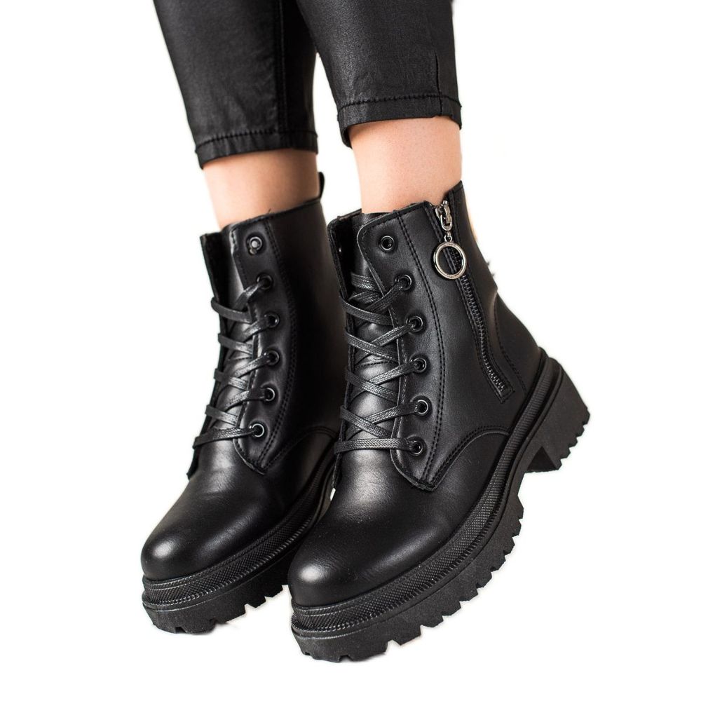 TRENDI Trappeurs noirs avec fermeture éclair