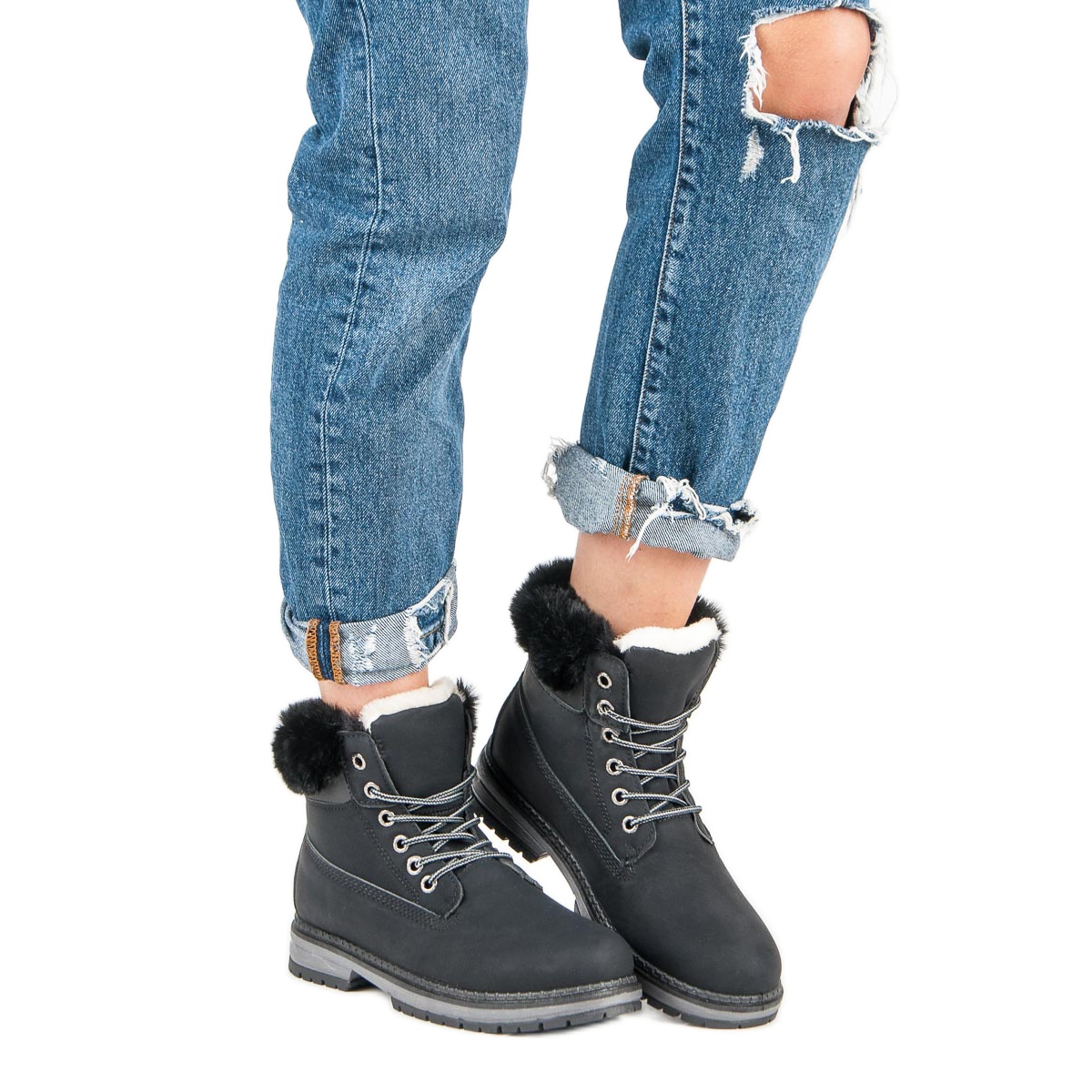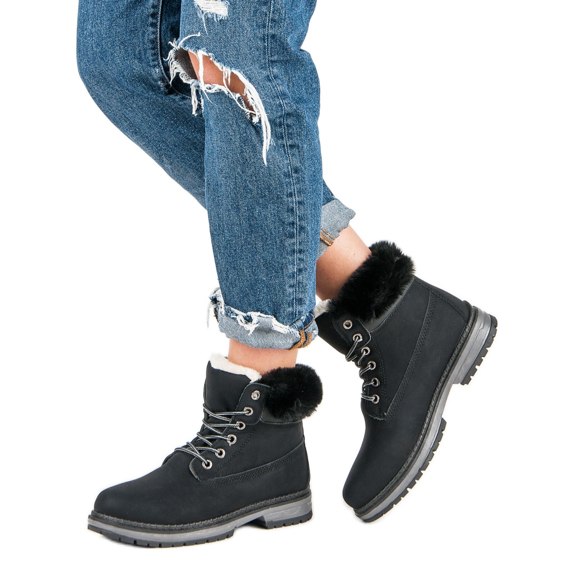 Fgm Paris Trappeurs noirs avec fourrure