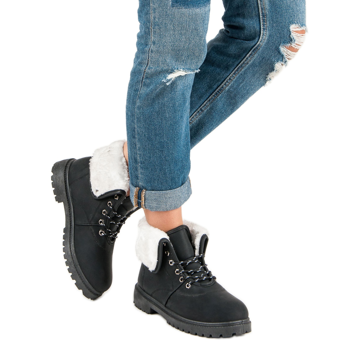 Nous vous présentons des bottes en fourrure noire qui s'intégreront parfaitement dans votre garde-robe automne-hiver. Ces chaussures décontractées avec un talon de 3,5 cm et une plateforme de 1,5 cm sont une combinaison parfaite de style et de confort. Fabriquées en cuir écologique de haute qualité et d'une élégante couleur noire, les baskets se caractérisent par une tige de coupe intéressante ornée de fourrure blanche, qui leur ajoute du charme.