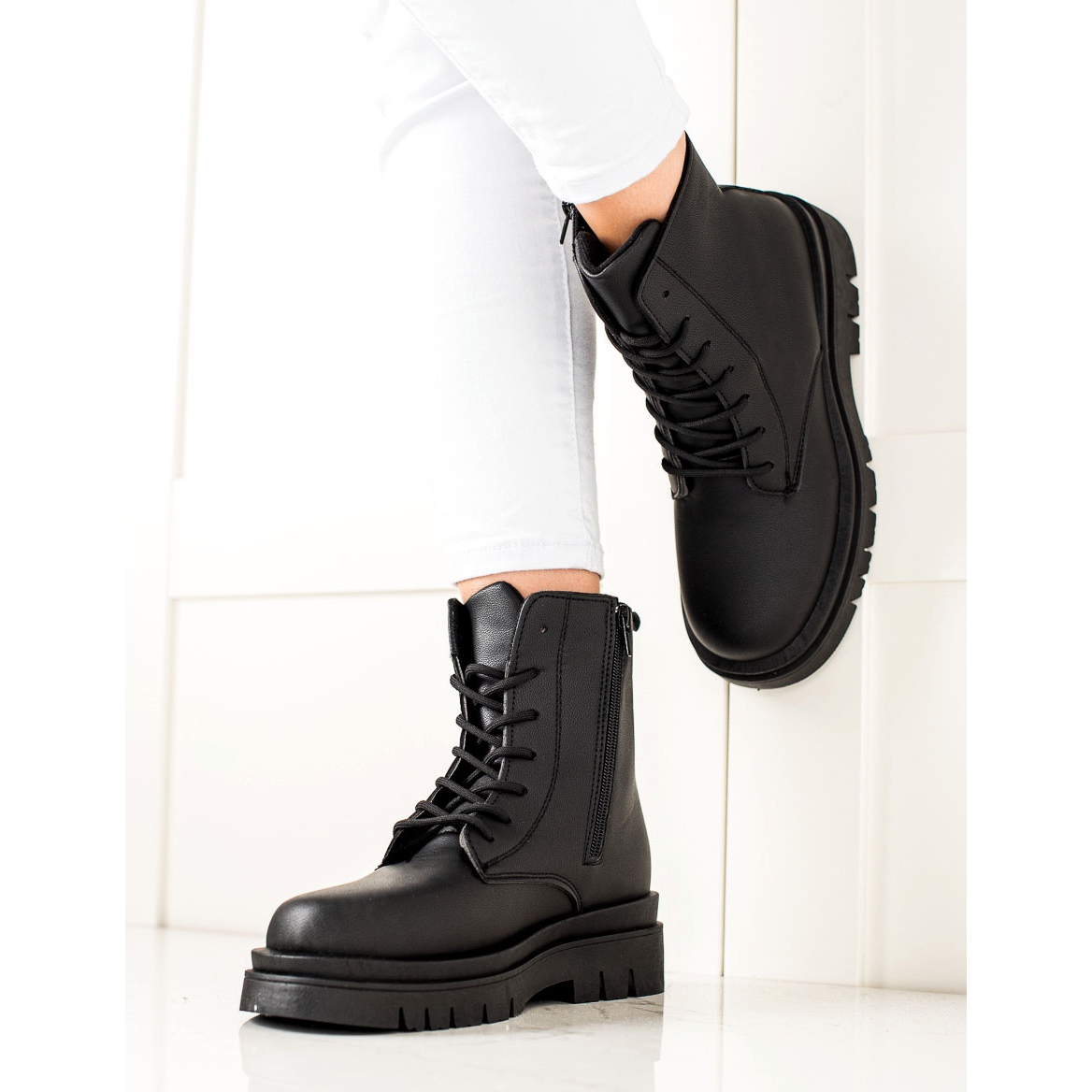 Découvrez les chaussures parfaites pour la prochaine saison automne-hiver : les bottes compensées noires classiques de la marque TRENDI. Ces travailleurs élégants allient confort et design tendance, ce qui en fait un excellent choix pour un usage quotidien.