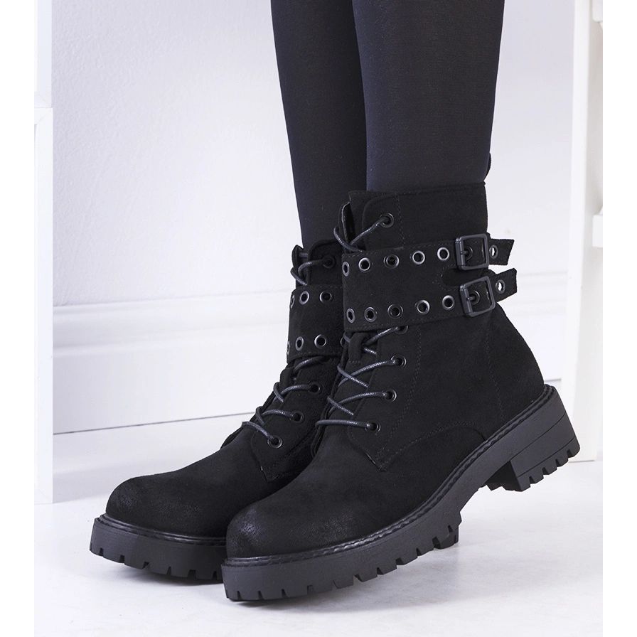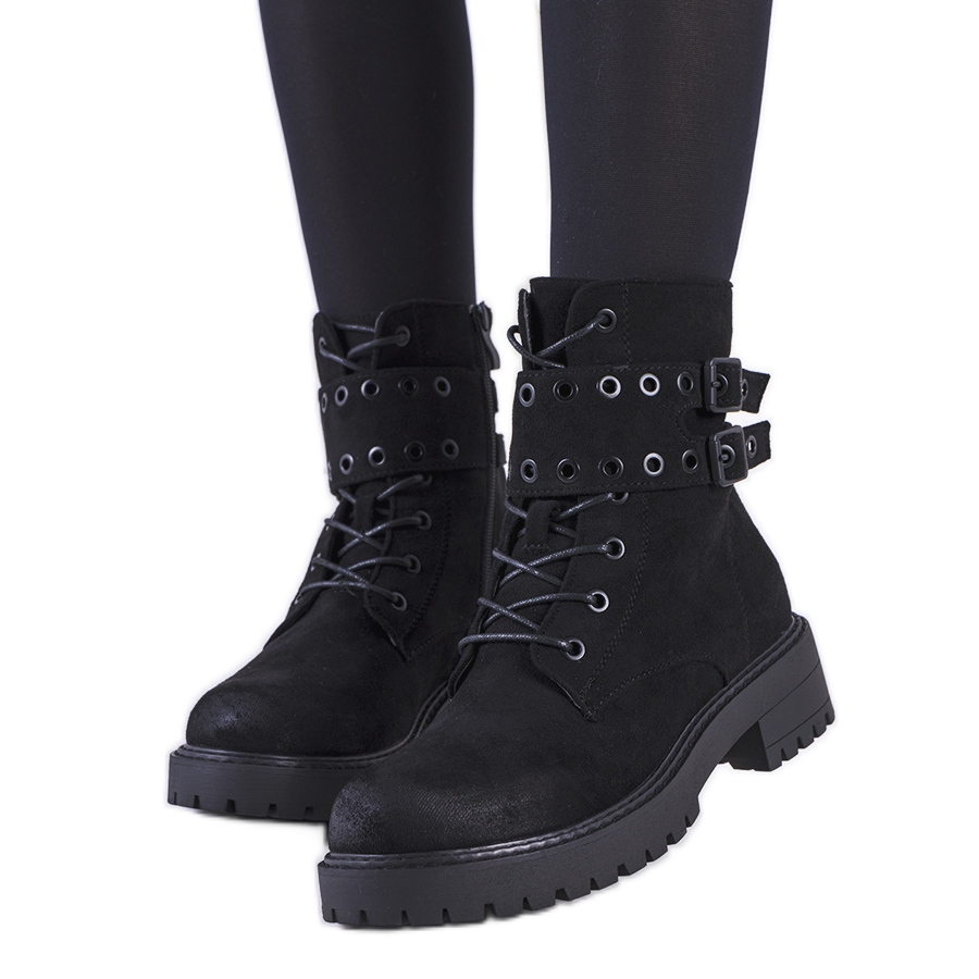 Les trappeurs classiques et noirs de Fallkirk sont une combinaison de commodité et un style brut à la mode. Situé sur une semelle en plastique épaisse et protégée, avec un nez arrondi et une ceinture décorative avec des boucles, elles sont parfaites pour les stylisations décontractées quotidiennes. La partie supérieure en cuir écologique en daim, intérieur isolé - parfait pour la saison automne / hiver.