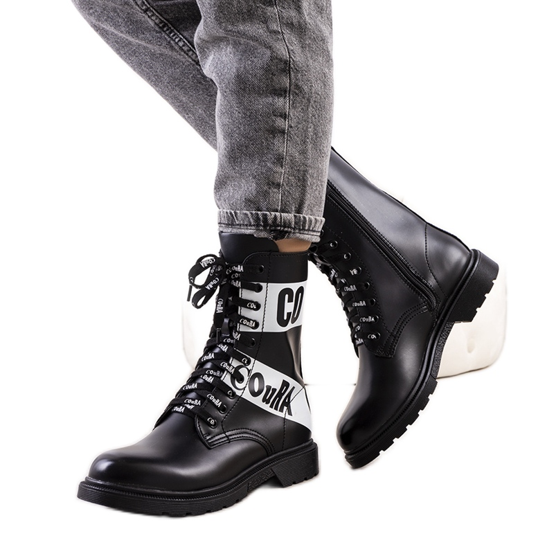 Des bottes élégantes dans une atmosphère rock qui fonctionnera dans les stylisations quotidiennes et audacieuses. Le modèle de bateau 8069 combine l'apparence à la mode des trappeurs avec des solutions pratiques: la tige en cuir écologique avec une imprimée "Mota" intéressante, un laçage confortable pour l'ajustement parfait et une fermeture éclair qui le rend plus facile à mettre rapidement.