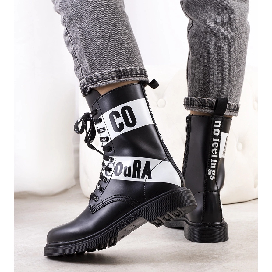 Des bottes noires de bottes 8069 décorées d'inscriptions de Mota - doivent avoir pour l'automne